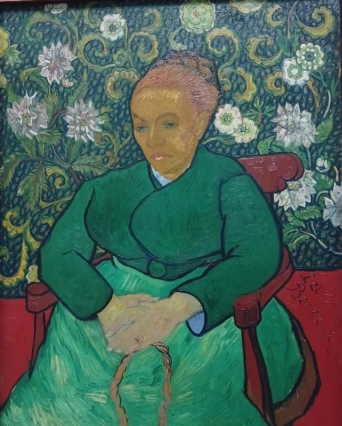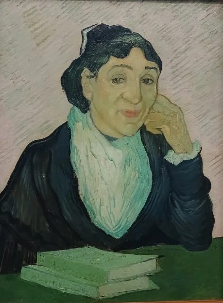 연분홍 색 벽을 배경으로 턱을 괴고 있는 <지누부인의 초상화>는 <밤의 카페테라스> 속의 카페 여주인을 모델로 한 작품이다. 그녀는 밤늦도록 압생트를 마시는 고흐의 말벗이 되어주기도 하고 어머니를 떠올리게도 했을 갓이다.