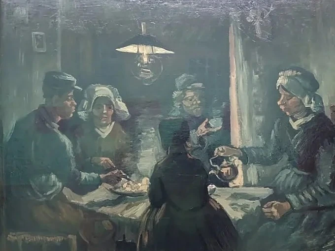 이 그림들을 하나하나 다 둘러보고. 나니, 식탁에 둘러앉아 '감자를 먹는 사람들'의 표정이 왜 저리 무뚝뚝한지 이해되었다. 하루 종일 단내 나도록 일하고 난 후 집으로 돌아와 서둘러 감자를 찌고 뜨거운 차 한 잔으로 허기를 달래었을 테니 표정은 퀭했을 테고, 또 내일이면 밭에 나가 흙을 파며 함께 일해야 할 이들이니 조금이라도 더 먹으라 권하고 싶었을 것 같았다.