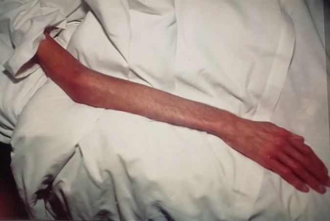 아래 작품은 미국의 사진작가 낸 골딘(Nan Goldin, 1953~)이 1990년대에 발표한 '에이즈 (AIDS)'시리즈 중 하나이다.