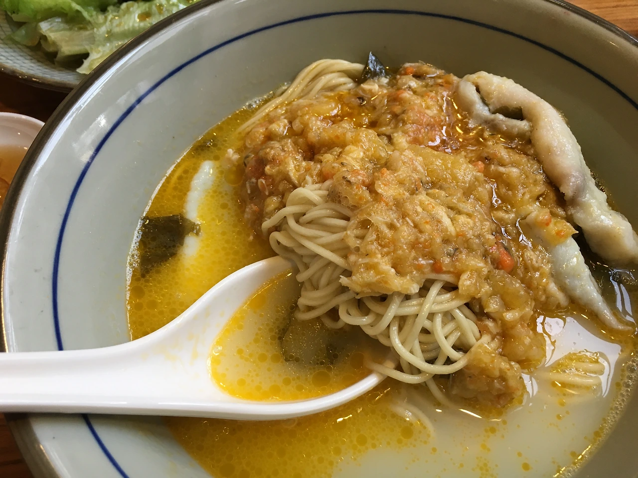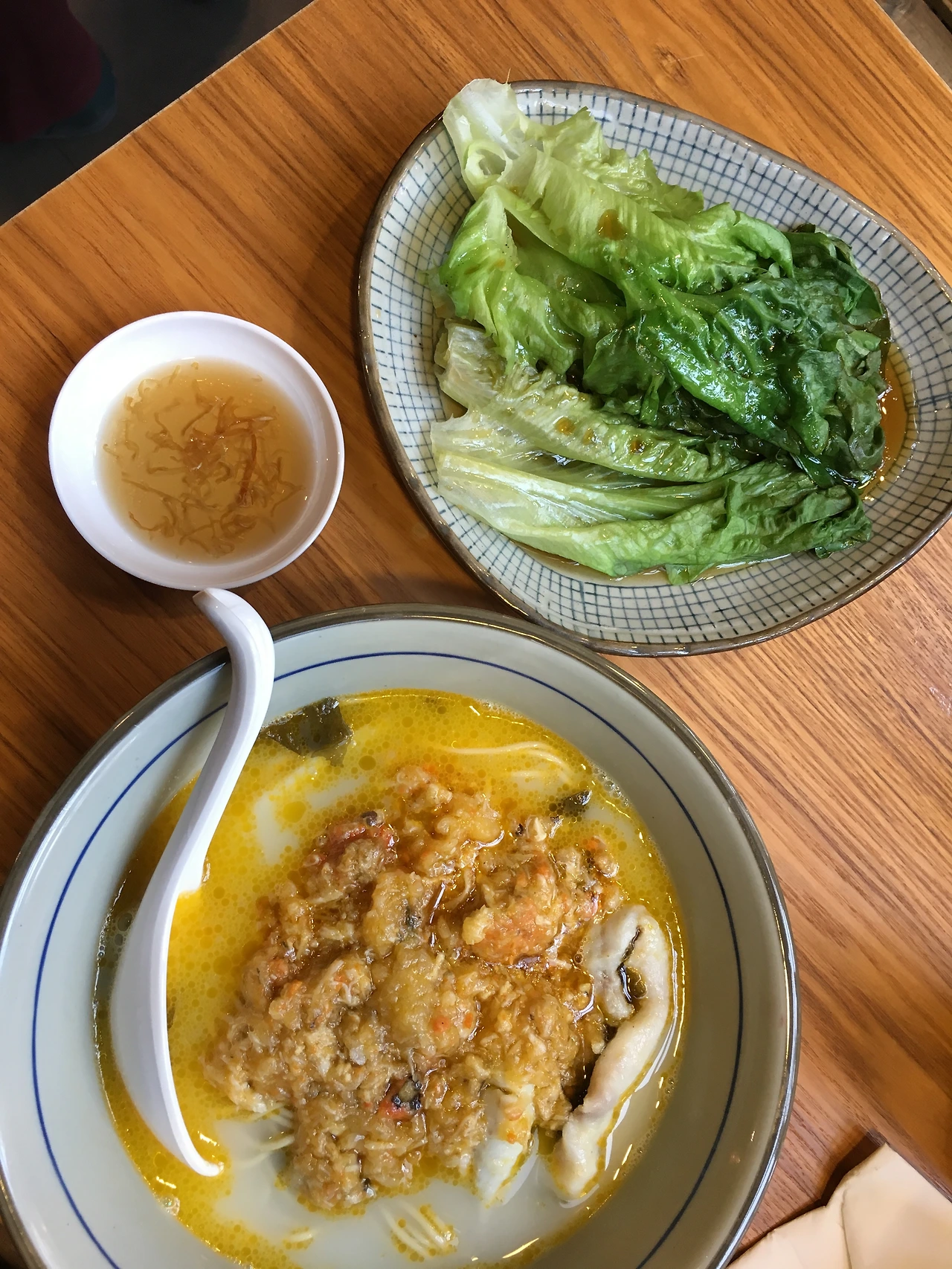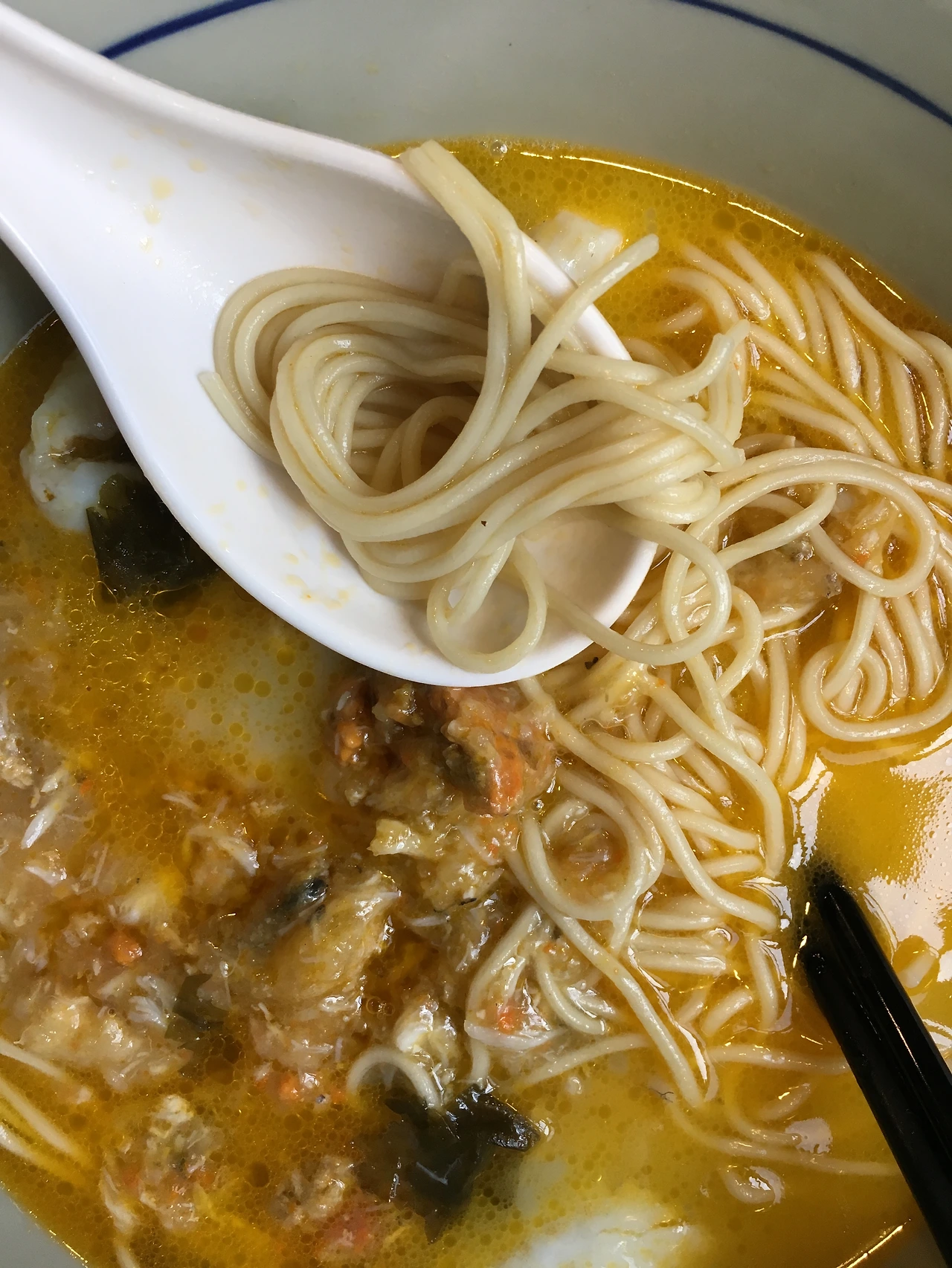 누들의 천국에 당도한 만큼 나도 상하이 신천지 부근 유난히 사람 많던 국숫집에 들어섰다. 게 내장으로 국물 맛에 탄탄한 국수면, 탱글한 흰 살 생선이 듬뿍. 굴소스로 휘릭 볶은 상추 사이드로 먹으니 돌아가는 비행도 거뜬할 것 같았다. 그날 받은 간식 봉지는 소중하게 숙소까지 가져간 기억.