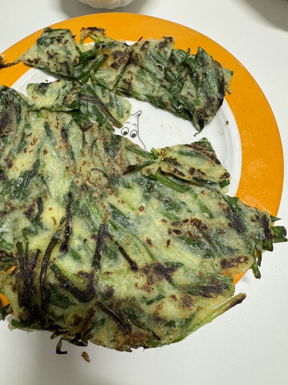 나는 쫄래쫄래, 엄마가 만들어 준 부추전을 가지고 갔다.