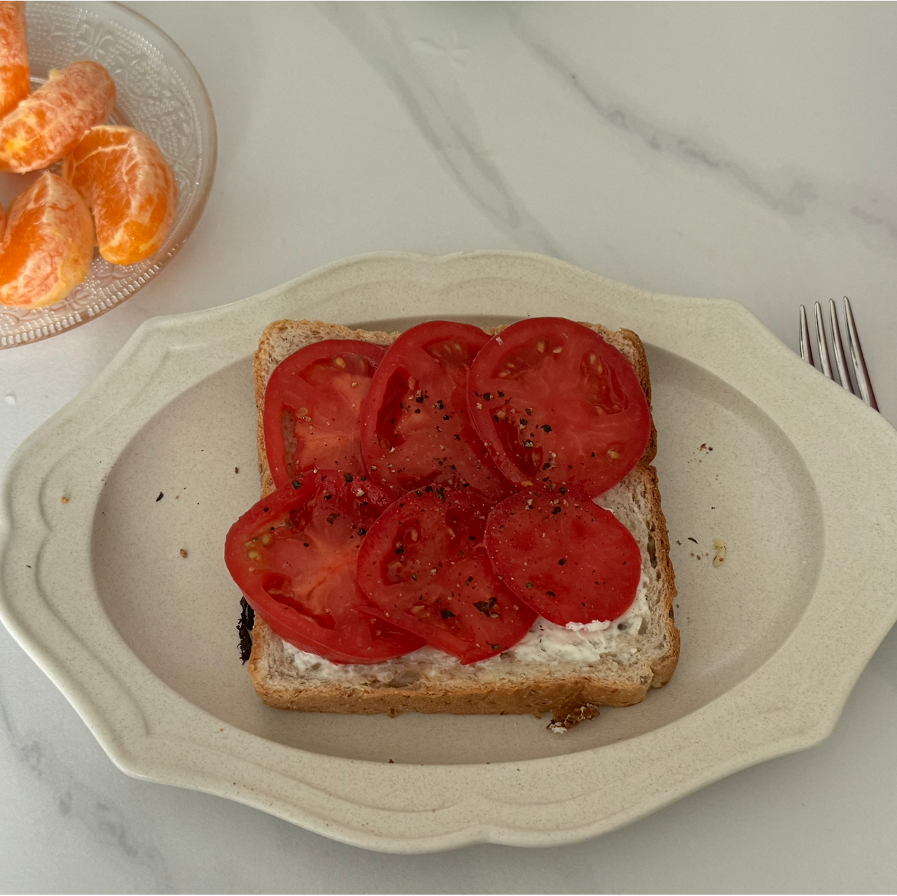 토스트 한 식빵에 크림치즈를 넉넉히 발라 토마토를 올려먹기도.
