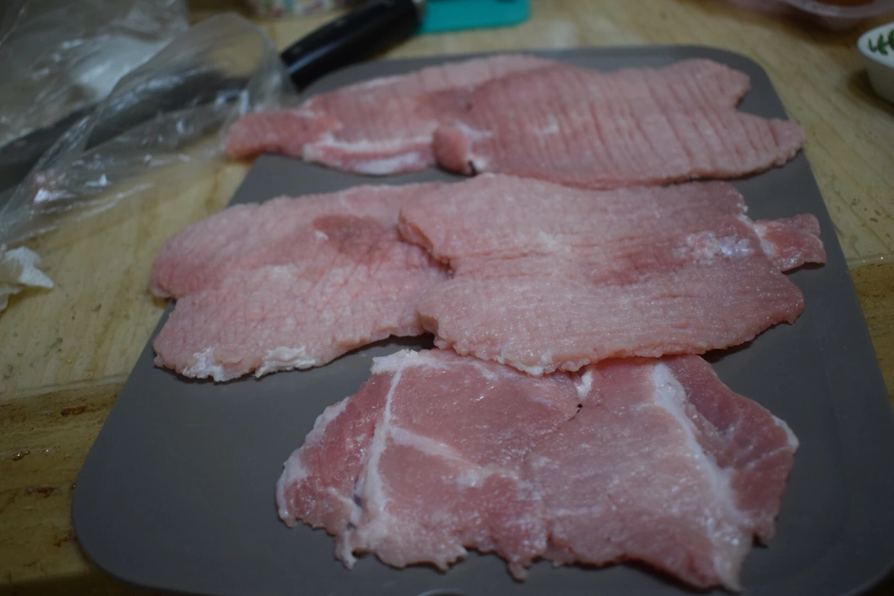 정육점에서 돼지 안심살을 잘 펴달라고 부탁했다.
