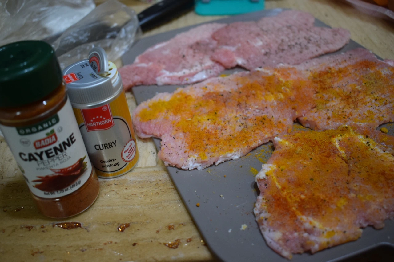 나머지는 커리, 카얀 페퍼 그리고 생강가루를 입혀줬다.