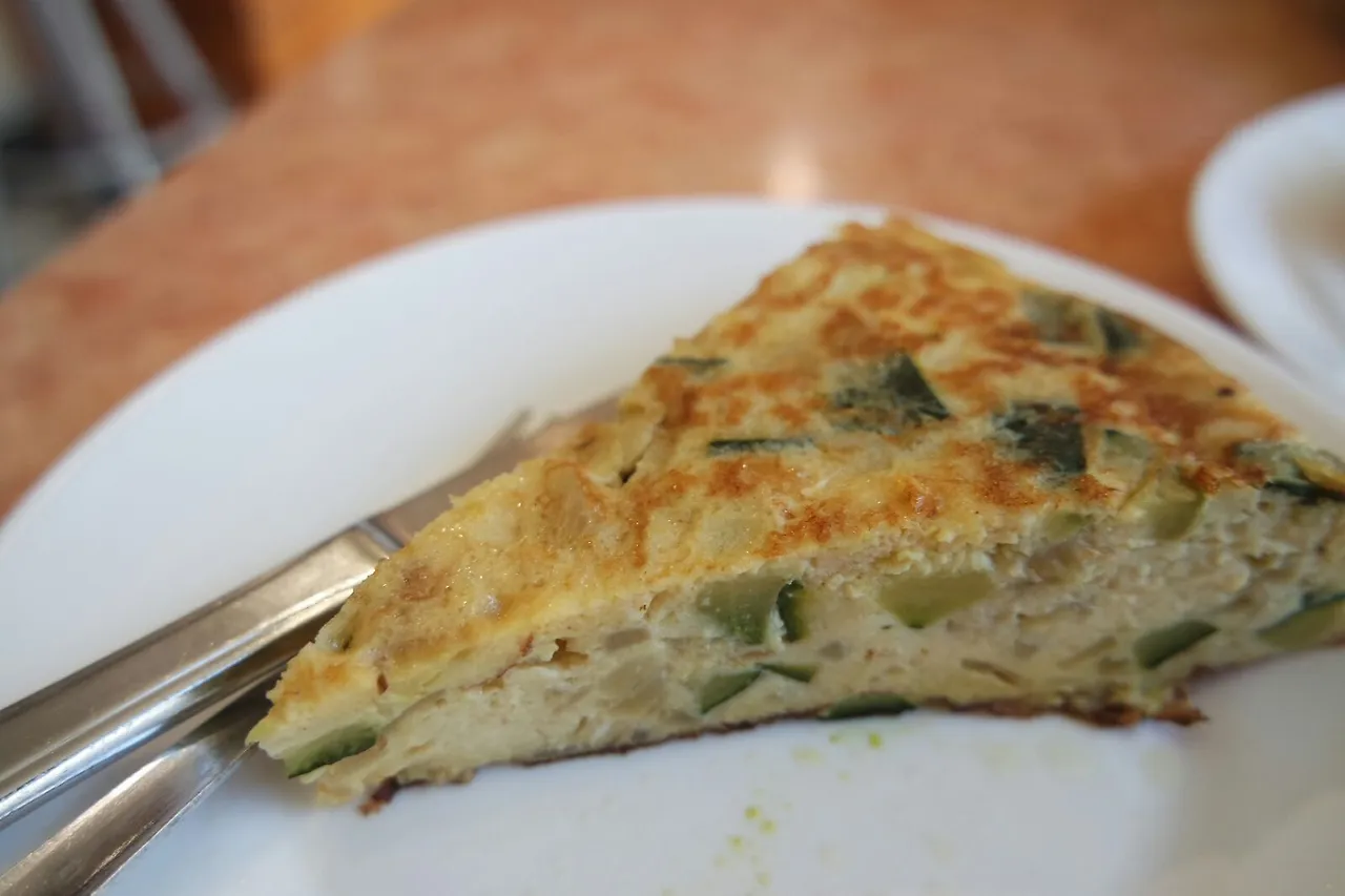 빵에 올리브 오일과 으깬 토마토 이외에 많이 먹는 아침메뉴, 스페인식 감자 오믈렛.