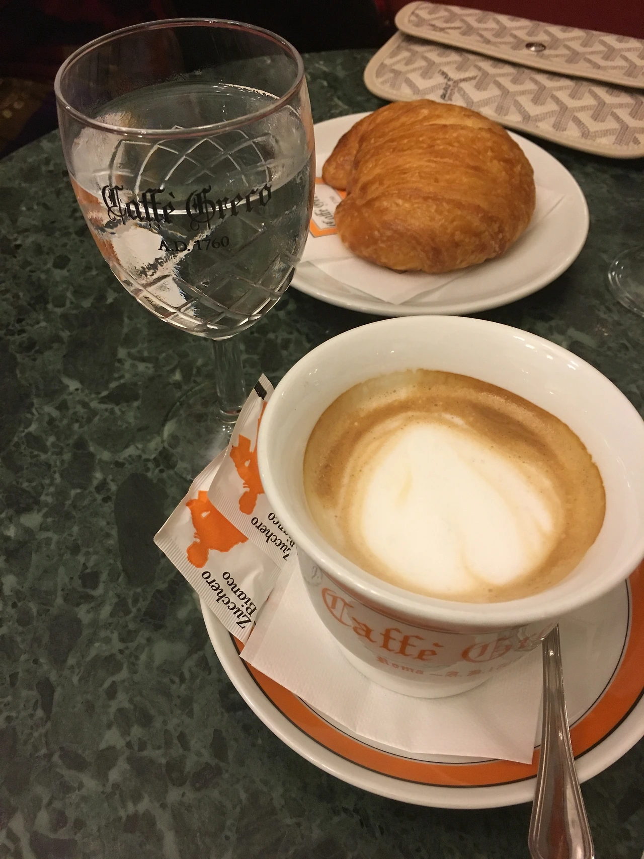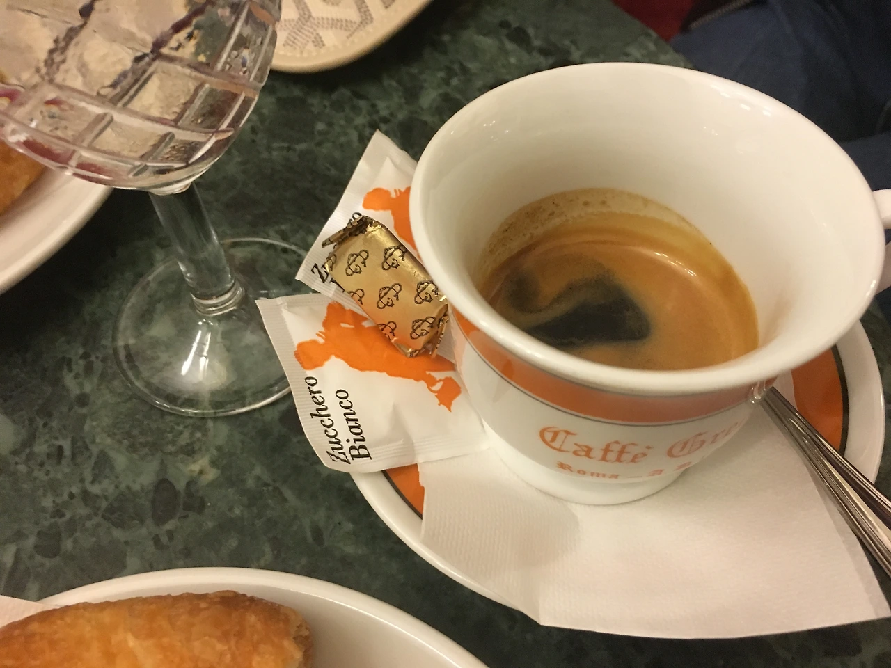 에스프레소에 각설탕. 여기에 크로와상 정도가 가장 흔한 이탈리아의 아침.