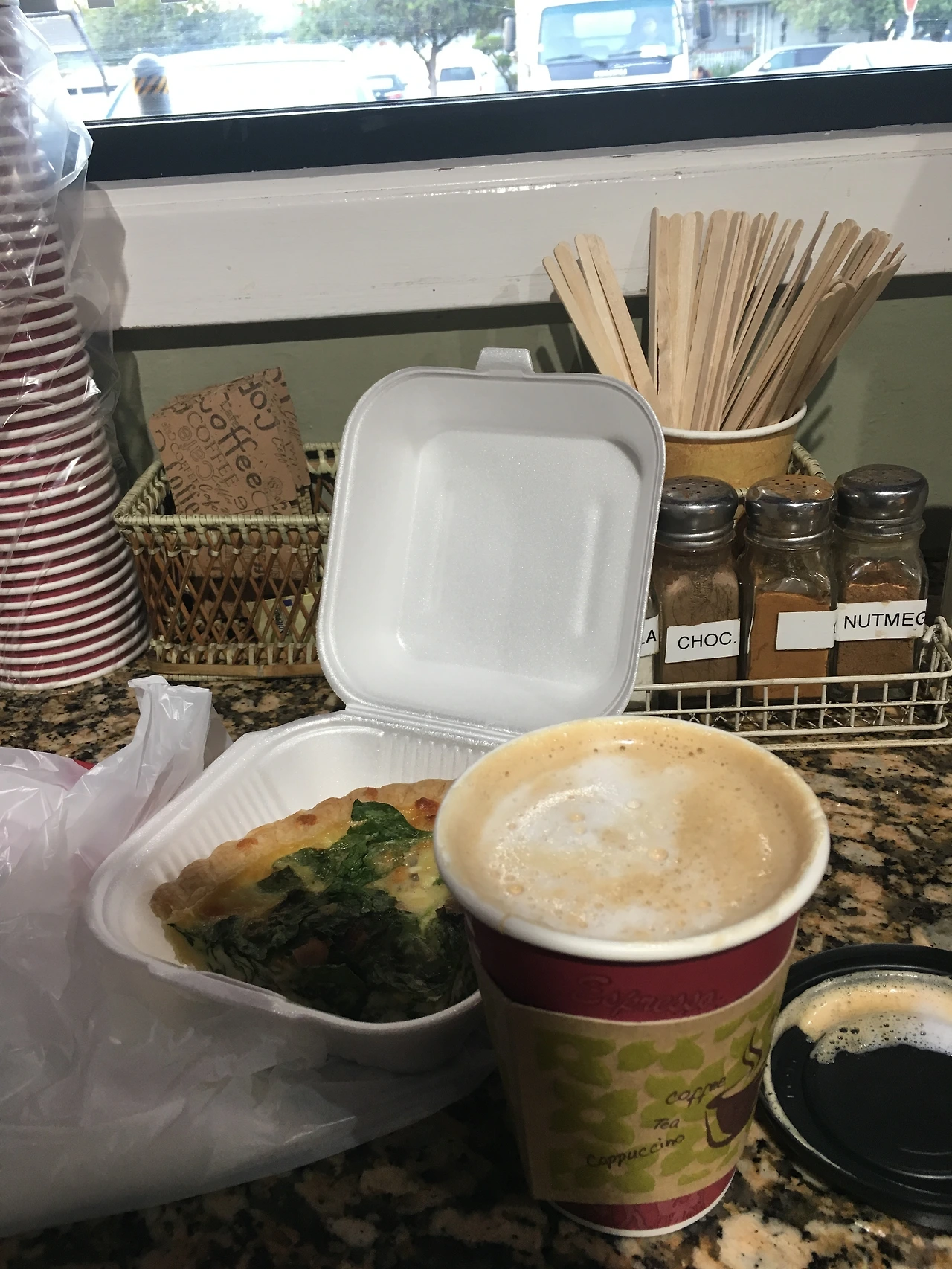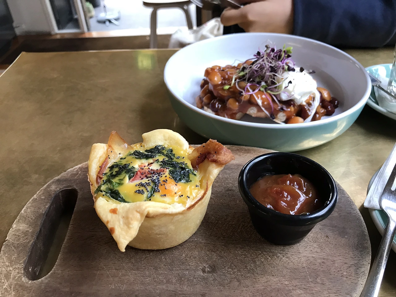 시금치계란 키쉬와 커다란 라떼. 저게 일반 사이즈였다.