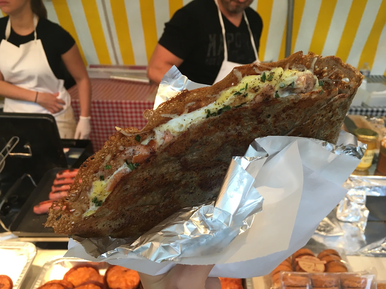 시장에서 먹었던 달걀, 연어, 치즈, 파슬리로 내가 좋아하는 것만 다 넣은 버전.