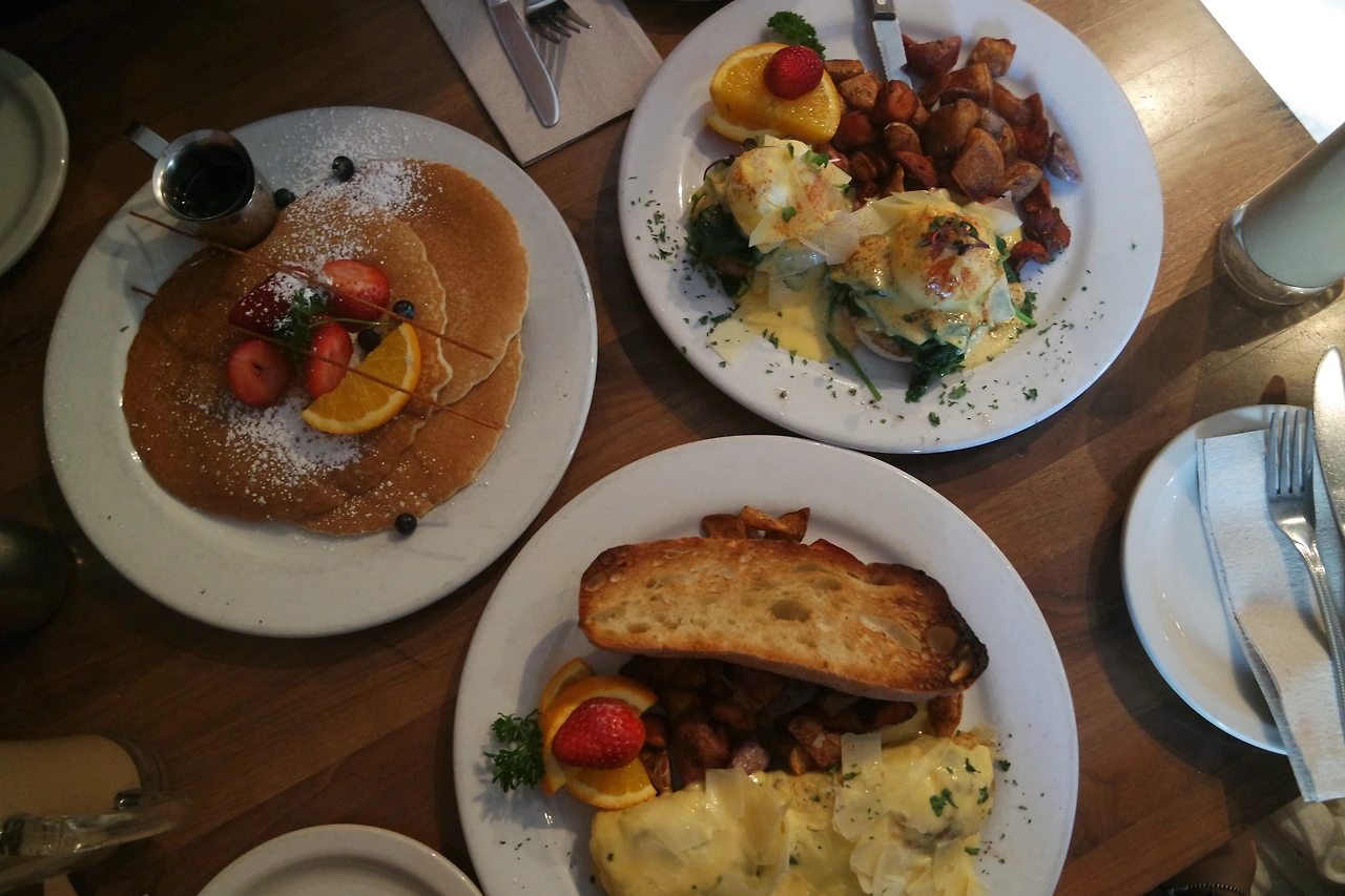 섹스 앤 더 시티의 촬영 장소로 유명한 사라베스의 에그 베네딕트, 버터밀크 팬케이크.
