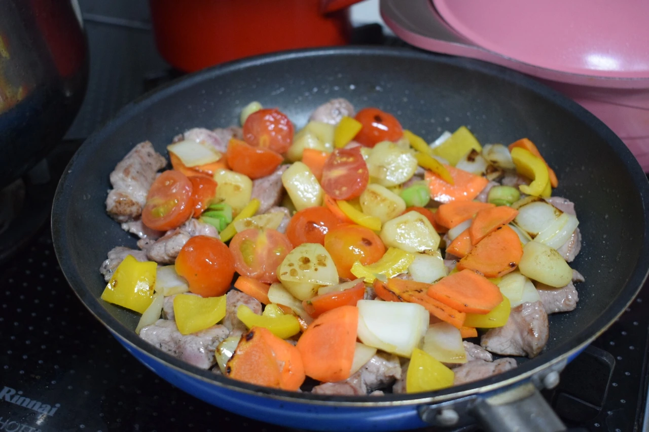 채소가 반쯤 익었을 때 고기를 다시 넣어준다.