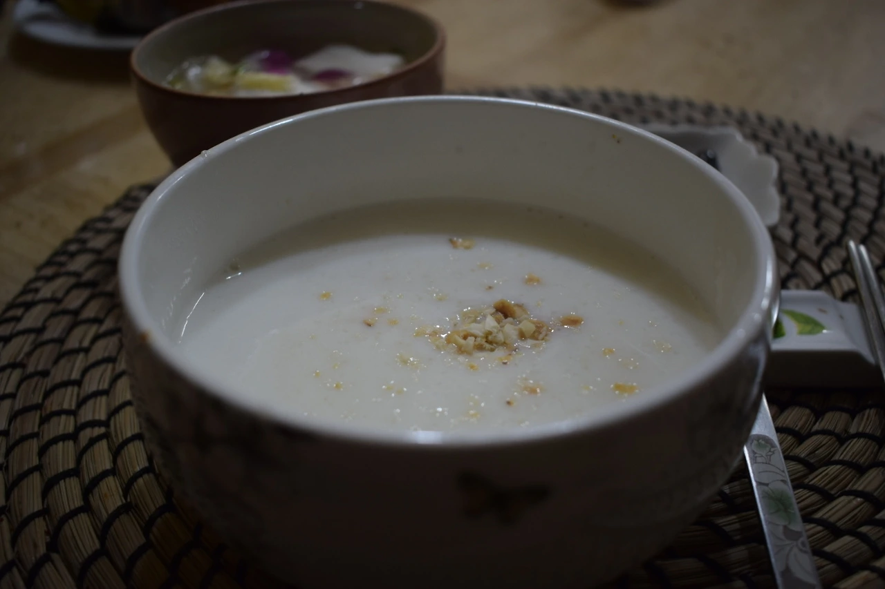 체에 거르기 때문에 목 넘김이 아주 매끄럽고 소화하기에도 부담이 없다. 곱게 간 쌀알의 전분기가 끈떡한 식감도 주기 때문에 그냥 음료를 먹는 것 같지도 않기에 식사하는 만족감도 있다. 아이나 노인에게도 안성맞춤 이리라.