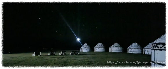 우리가 묵은 곳은 20여 개 동이 있는 제법 큰 유르트 숙소였다. 일행은 네 개 동을 예약했는데 주인은 우리가 도착하고서야 난방을 시작했다. 해가 지자 바람이 불고 추워져서 가지고 있는 옷들을 모두 꺼내 반소매, 긴소매 구분 없이 마구 겹쳐 입었다. 6겹이나 겹쳐 입어도 한기가 스며들었다. 여름이라고 방심하고 얇은 패딩 하나 가져온 것이 후회스러웠다.