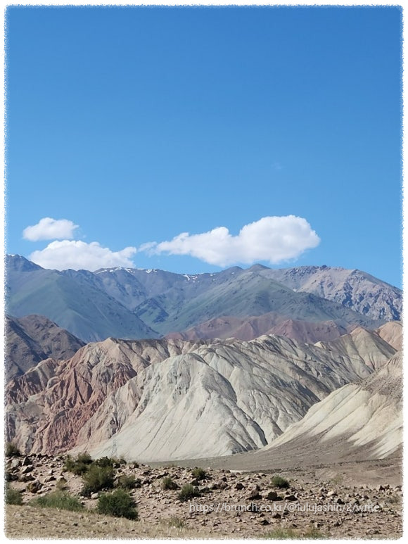 키르기스스탄을 ‘중앙아시아의 스위스’라고 부를 만큼 이름값을 높여주는 것은 청명한 하늘과 각양각색의 산들이었다. 키르기스스탄은 전체 국토의 90%가 산지로 어디를 가나 산들로 둘러싸여 있다. 앞산, 뒷산, 옆 산 겹겹이 층을 이루고 있는 산들은 각각마다 색깔이 오묘하였고 고산이라 그런지 우리나라에서 볼 수 있는 초록 숲의 느낌이 아닌 민둥산이었다.