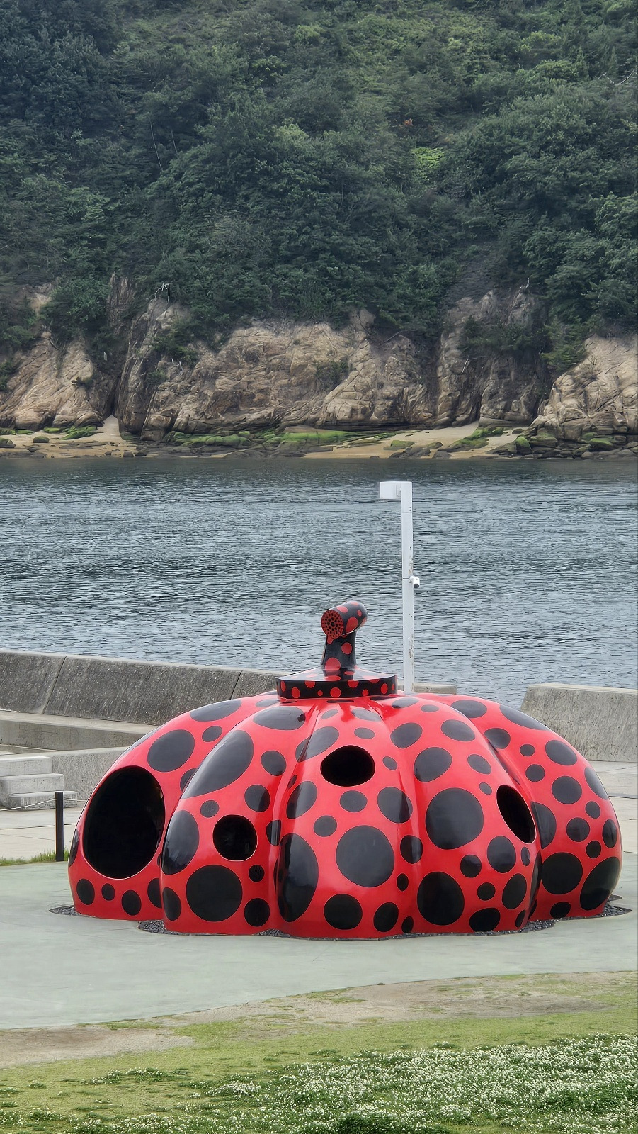 얼마 전 여행으로 다녀온 나오시마 항구 근처에 빨간 호박과 노란 호박이 하나씩 전시되어 있었다. 나오시마는 섬은 작지만 미술관도 여러 개 있고 빈집 프로젝트라는 스토리를 만들어 방치된 빈집에 미술품(돌, 자유의 여신상 등) 하나씩을 얹어 사람들을 불러 모았다. 마을을 살리는 아이디어가 신선했다. 쿠사마의 작품까지 있으니 '예술의 섬'이라 할만했다.