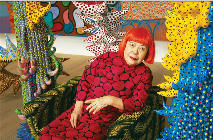 쿠사마는 1929년 나가노현에서 부유한 종자상 집안 막내딸로 태어났다. 올해 96세. 현직 작가로는 놀라운 나이다. 아직도 작품을 만들고 있다니 존경스럽다. 그녀의 모습은 작품처럼 개성이 넘치고 화려하다.