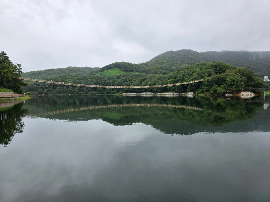 흐린 하늘을 이고 있는 마장호수는 꽤 넓은 어깨를 가진 기품 있는 모습이었다. 날씨 때문인지 사람들이 적어 호수를 가로지르는 출렁다리는 몇 안 되는 사람을 태우고 소심하게 출렁거렸다. 계속 따라 걸으니 마장호수 몸 둘레가 느껴진다.