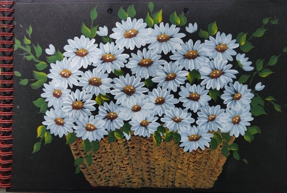 꽃 그림은 A4 크기의 검은 스케치북에 아크릴물감으로 그린다. 초급, 중급, 고급과정을 거치면서 데이지, 라벤더, 엉겅퀴, 장미, 수국, 들장미, 피요니, 블랙베리 등 여러 가지 꽃을 배웠다.