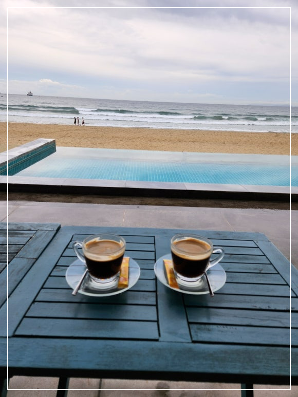 나와 친구는 아침저녁으로 길고 긴 미케비치 해변에서 ‘슈퍼 어싱(Super Earthing)’을 했다. 바닷물이 발목에 잠길 정도의 높이로 걸어야 효과가 있다고 해서 바닷물이 들락날락하는 해변을 첨벙첨벙 걸었다.