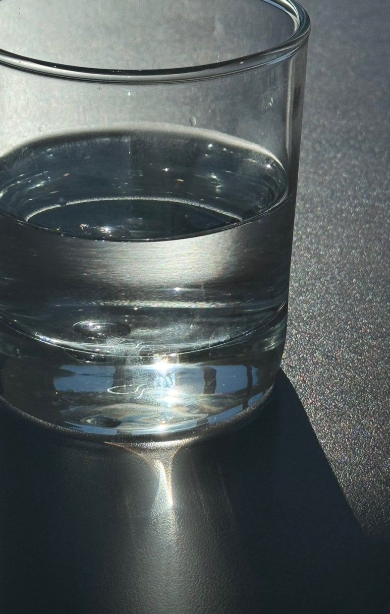 오후 2시의 햇살이 물컵 한 잔에 머금은 빛