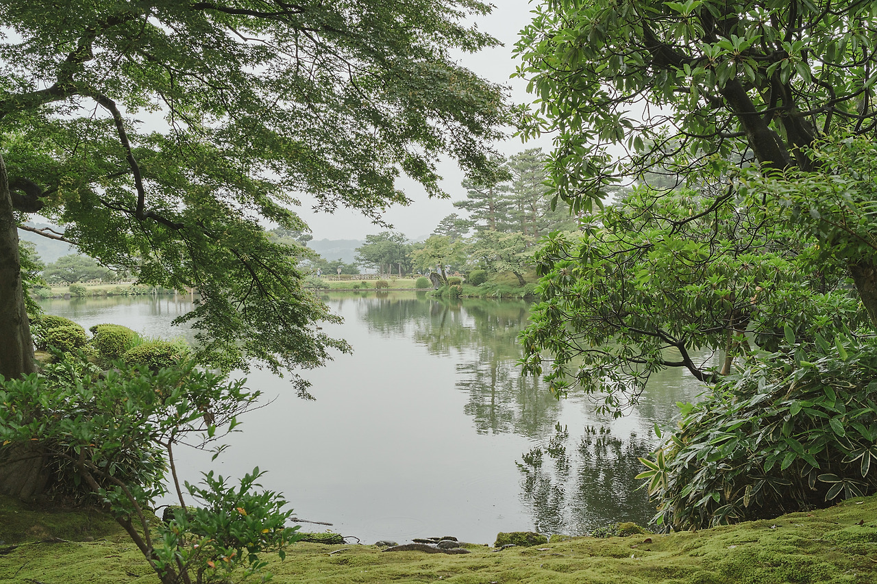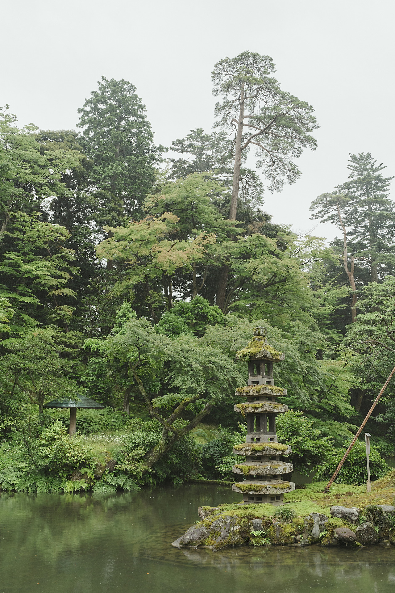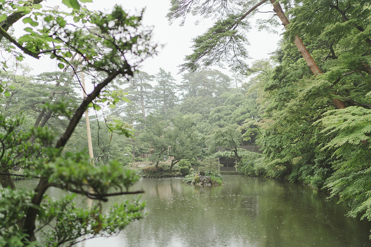 겐로쿠엔은 입구가 여러 군데 있는 것 같았다. 나는 가나자와 시청과 가까운 쪽 입구에서부터 출발했다. 버스를 타고 가면서부터 내리던 빗줄기는 점차 굵어졌고, 평소 같았으면 잔잔히 흘렀을 것 같은 시냇물도 제법 빠르게 흘렀다.