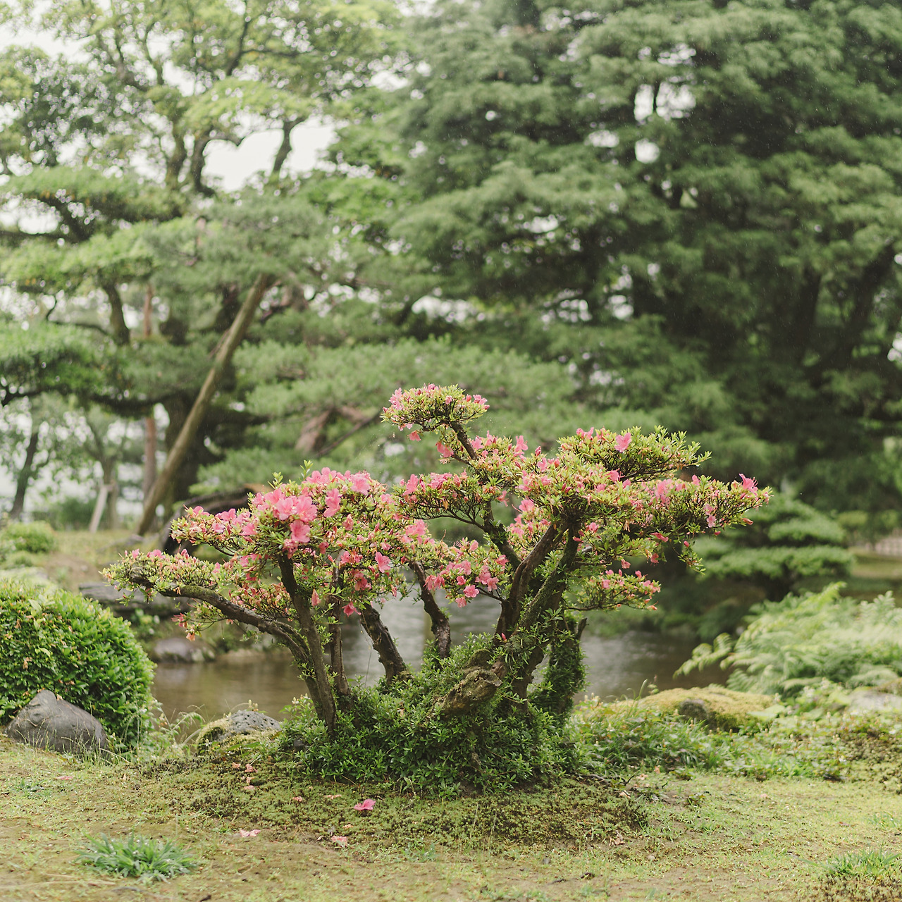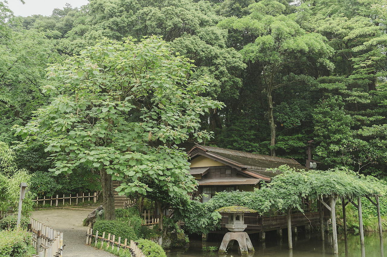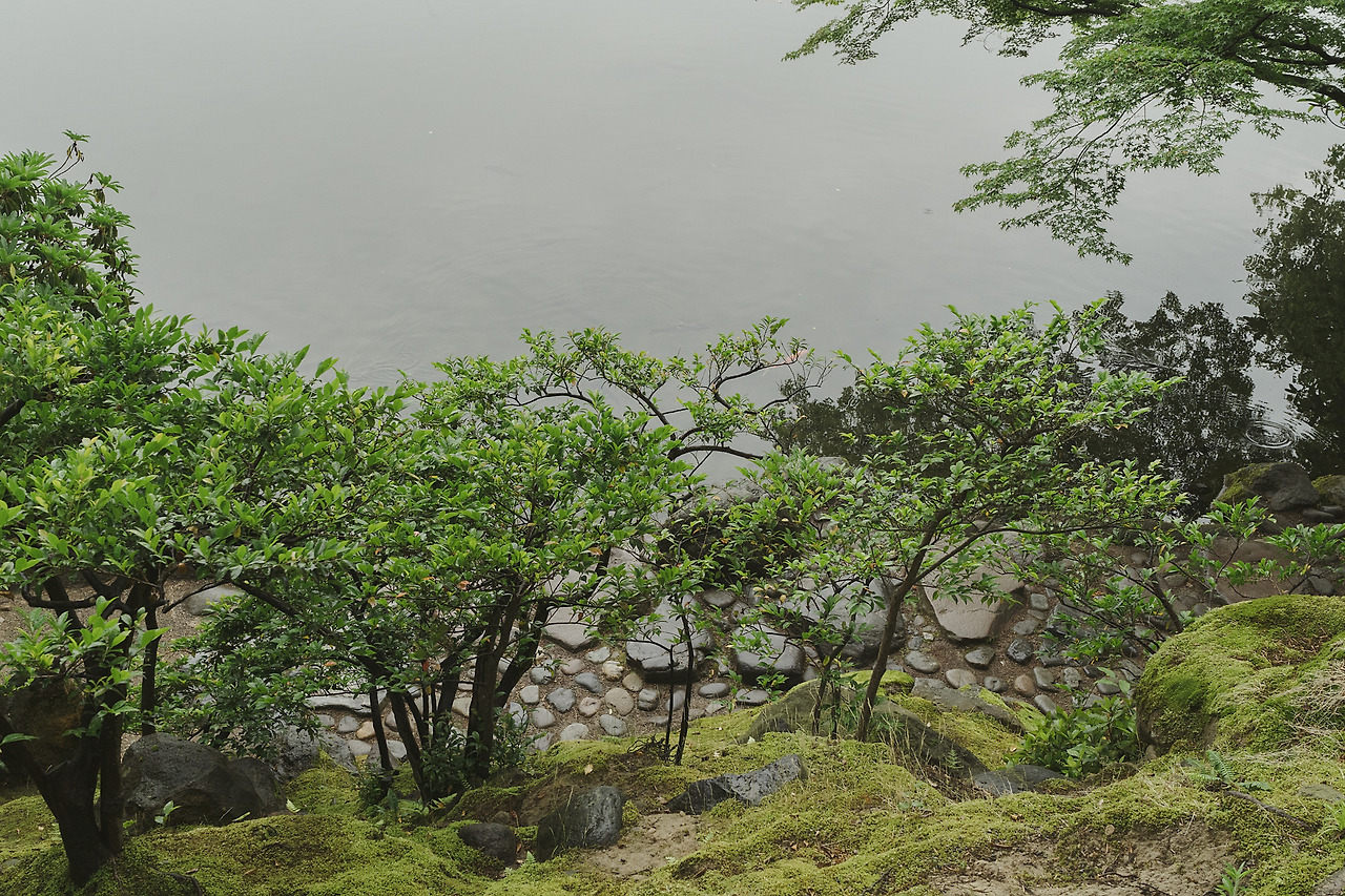 과연 일본 3대 정원이라 그런지 비 오는 날에도 사람이 꽤 많았다. 프리웨딩을 찍는 커플도 있었고, 가이드와 함께 무리 지어 다니는 인파들도 간간히 보였다. 우산이나 우비 때문에 배경에 사람이 있으면 더 거슬리더라.