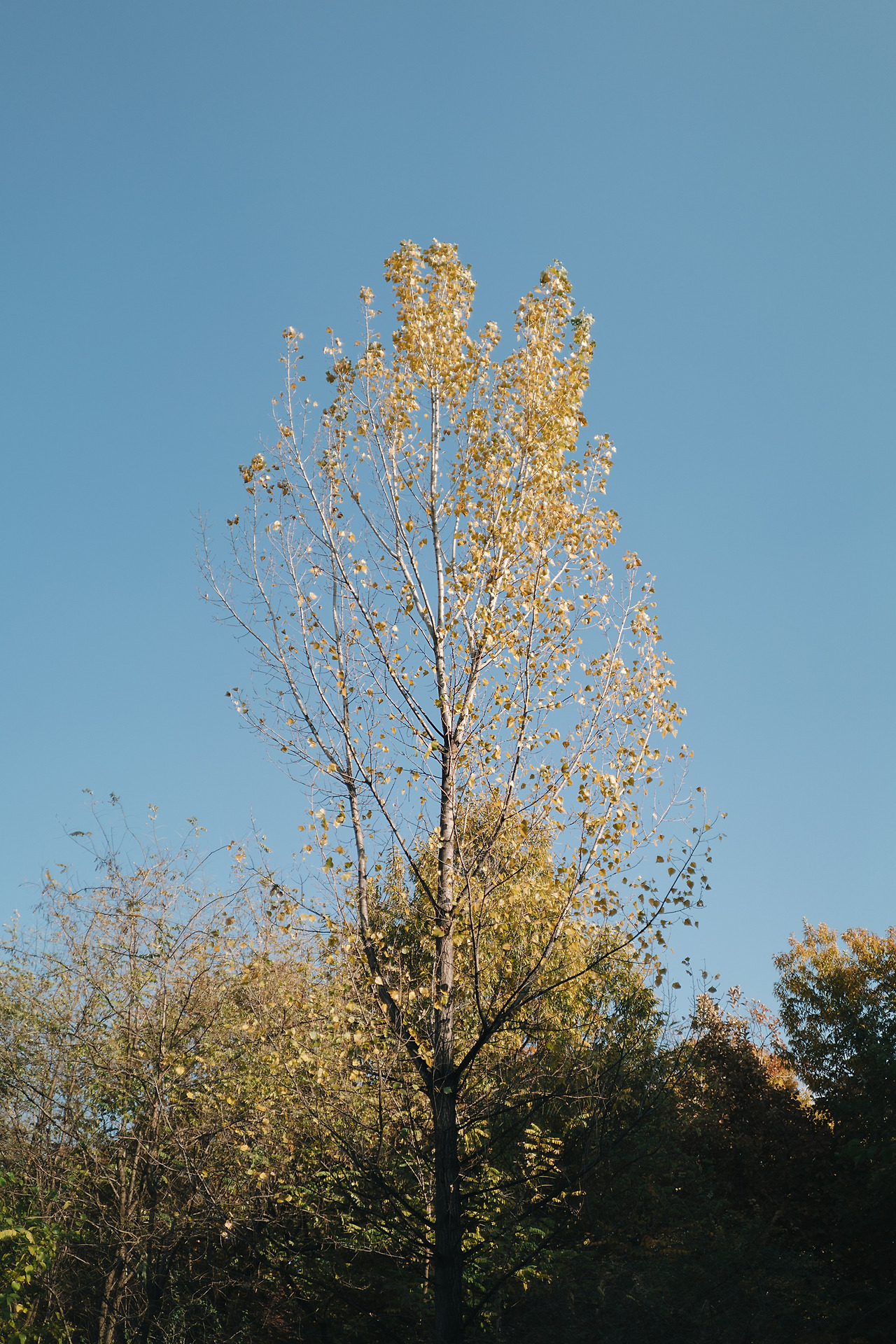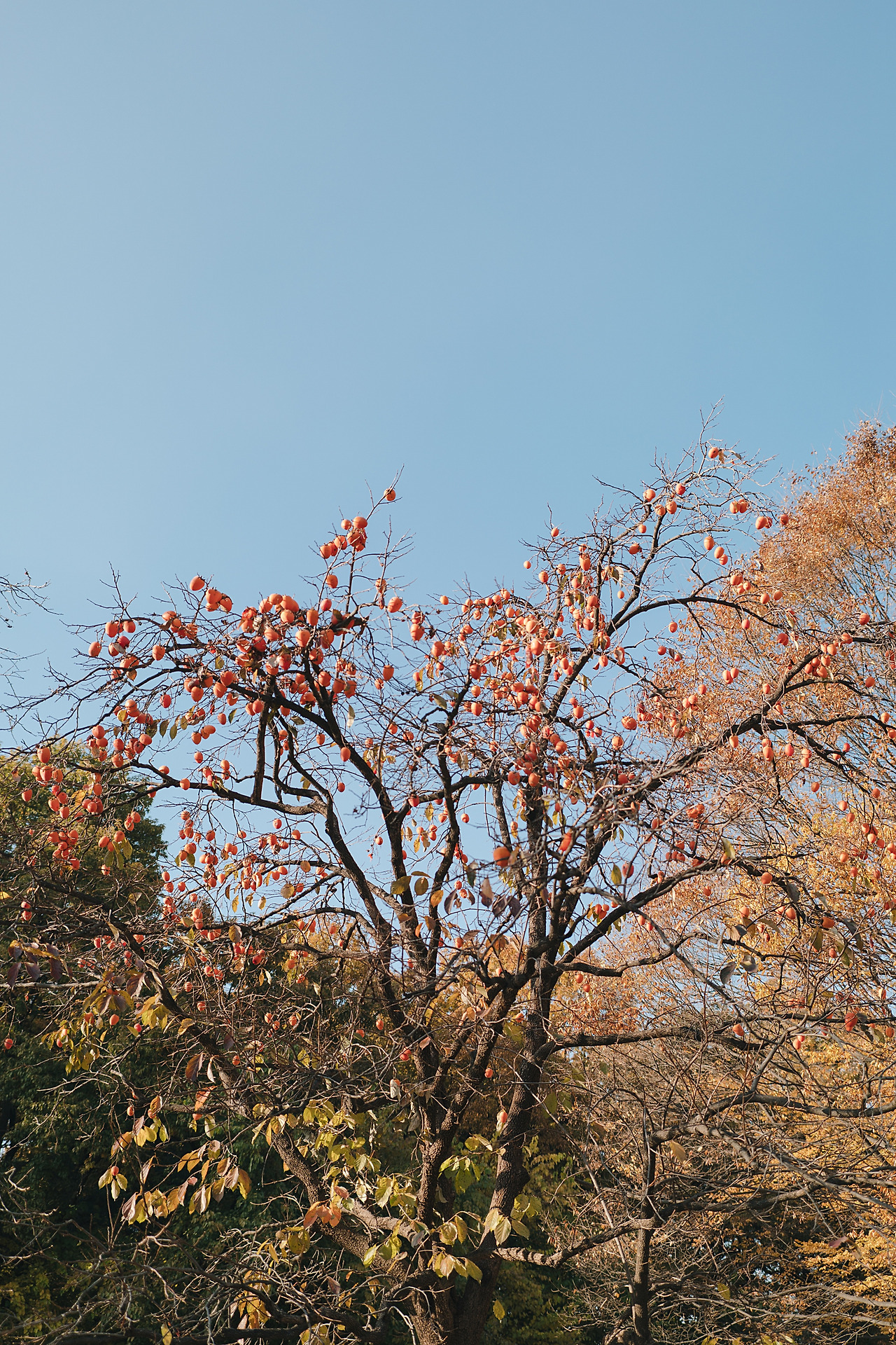 언덕 높은 곳의 나무들이 단풍빛으로 반짝였고, 아직 열매가 남아있는 나무들 근처에는 새를 찍으려는 사람들이 모여있었다.
