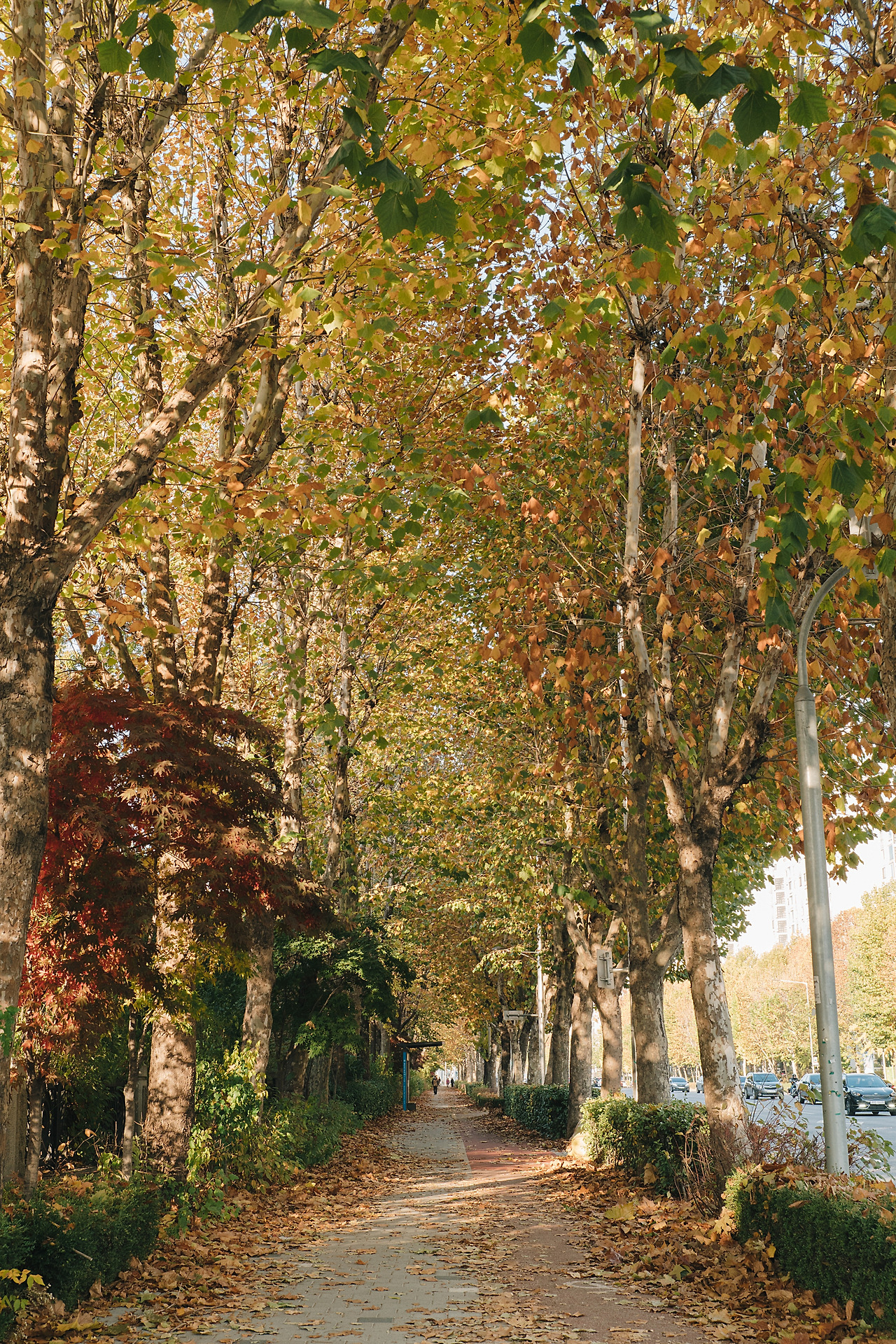 나른한 빛을 따라 색이 변하고 낙엽이 쌓인 길들을 걸었다.
