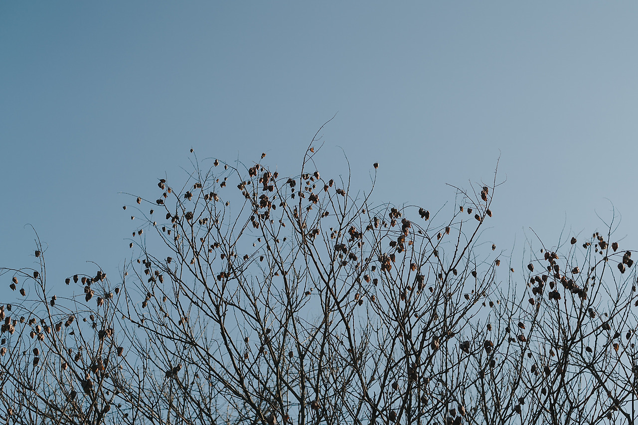 빈 가지로 시작해 여러 모습을 보여준 나무는 다시 한 해가 시작할 때처럼 초록빛이 거의 사라졌다. 잎이 떨어지고 열매껍질만 남은 빈 가지 사이로 마른 빛이 내려오고 있었다.