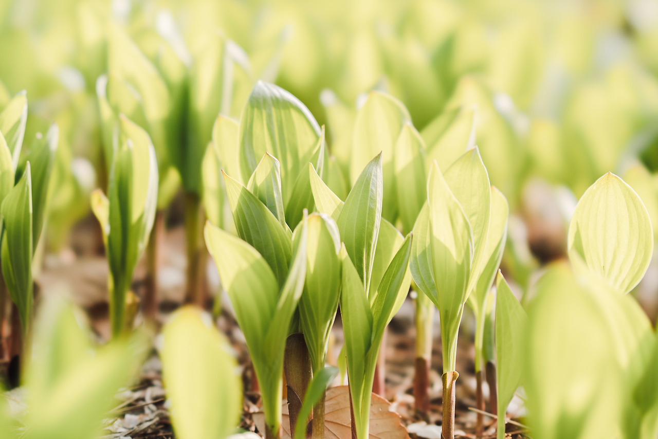 고개를 들어 화려하게 피어난 봄꽃들을 보다 문득 아래를 내려다보면, 땅속에서 올라온 것들과 이제 갓 잎을 틔운 나무들이 넘어가는 햇빛을 받아 은은하게 빛나고 있다.