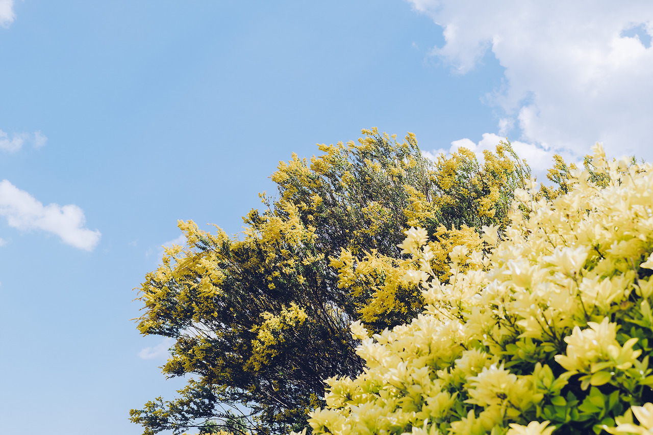 광활한 주차장을 지나 공원 입구 다리 근처까지 오니, 나무 위에 가득 피어난 작고 노란 꽃들이 나를 반겼다.