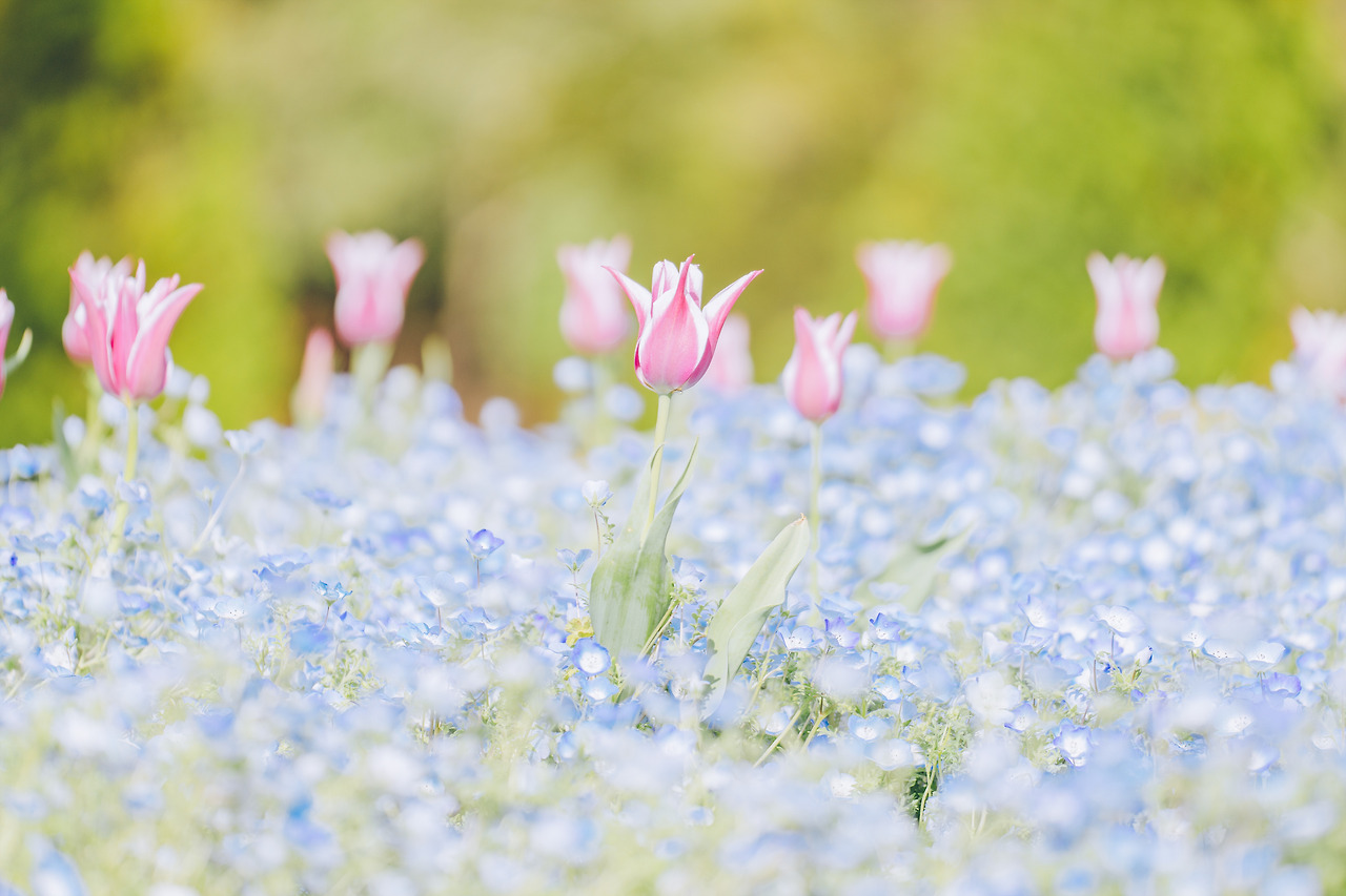 작고 아담하게 꾸며진 정원들 너머로 푸른 꽃들과 튤립들이 넓게 펼쳐져 있었다. 마크로렌즈로 멀리서 배경을 압축시켜 찍는 것에 집중하느라 잘 몰랐었는데, 프레임 안에 사람이 좀 나오더라도 풍경을 넓게 잡아봤다면 어땠을까 하는 생각이 들었다.