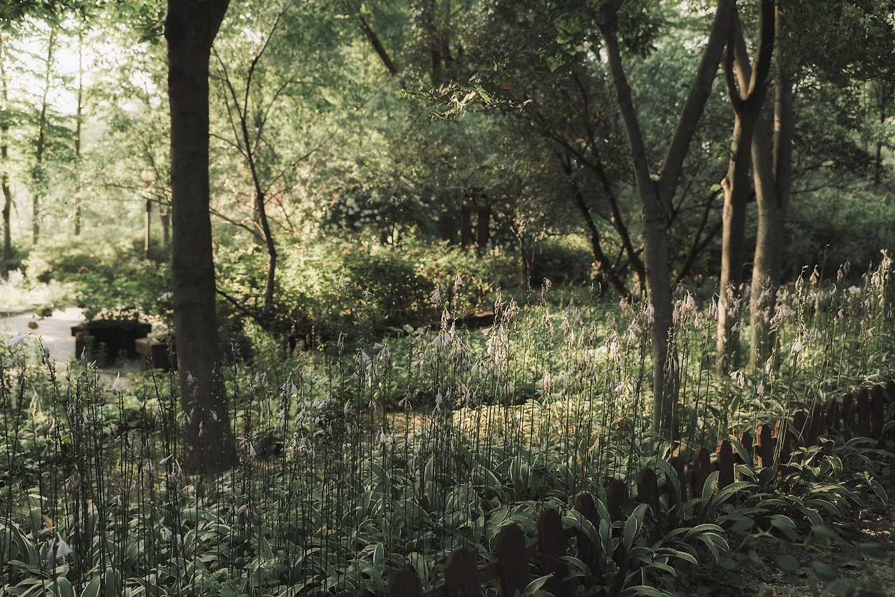 타죽을 기세로 햇볕이 강한 날이라 먼 데 가는데 난이도가 제법 있어서 걱정을 많이 했다. 다행히 가는 데 너무 오래 걸려서(...) 가자마자 곧 해질녘의 햇볓이 들어 생각만큼 빛이 강하지 않았다. 정원 근처에는 큰 나무들이 둘러싸고 있는 형식이라 빛이 나무 틈새로 스며들어왔다.