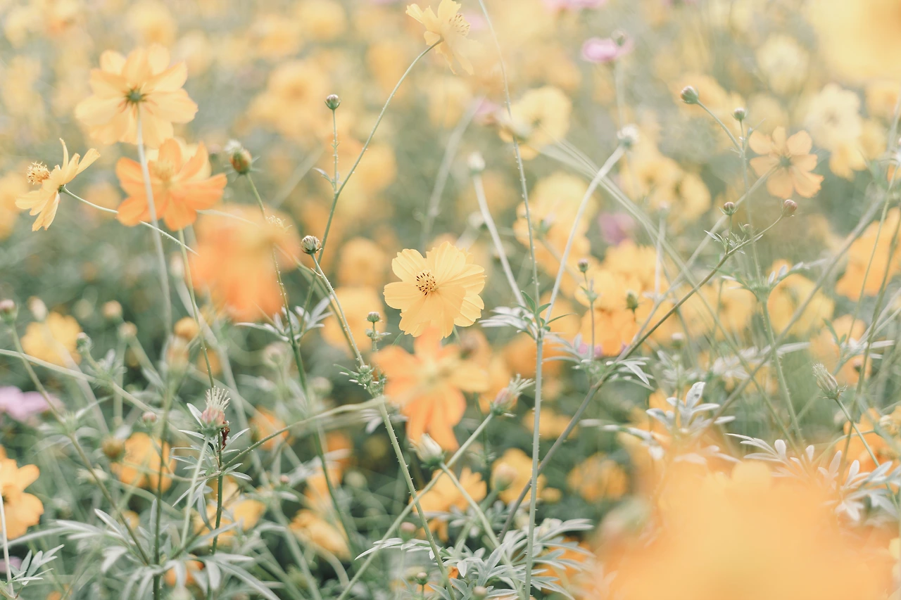 이 꽃은 황화코스모스라고 하더라. 꽃술이 마치 보석반지마냥 툭 튀어나와 있고, 잎이 마치 겹꽃처럼 나는 것이 특징인 듯했다. 노란색과 주황색을 봤음.