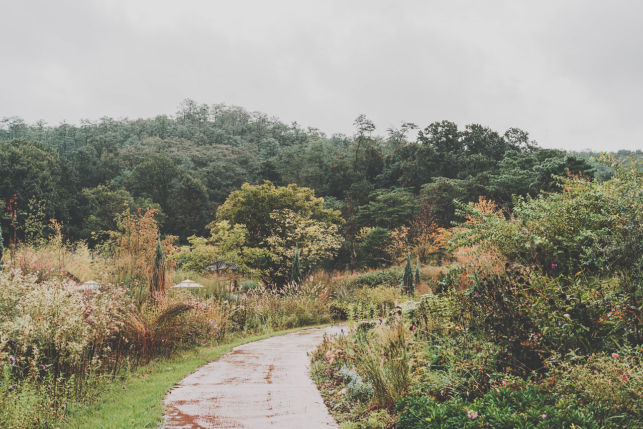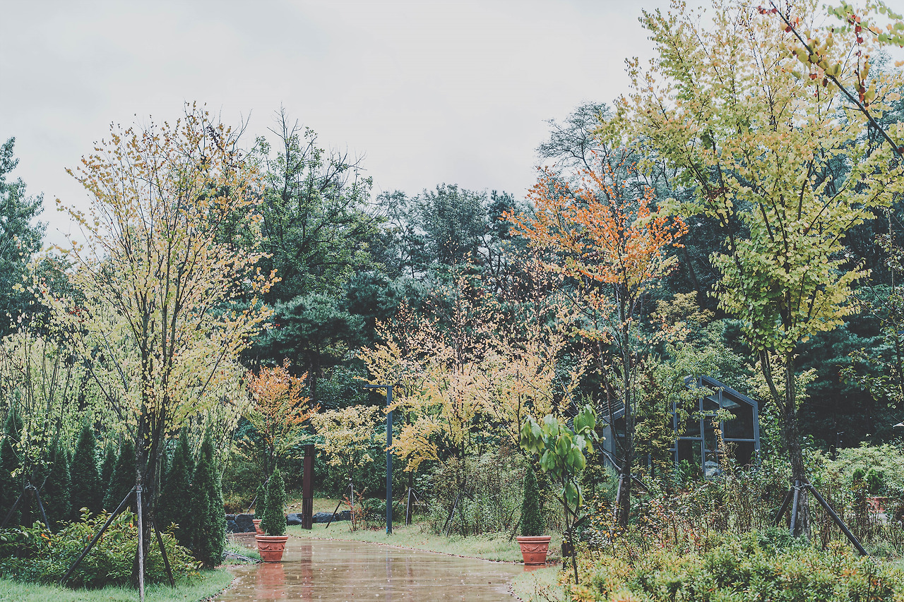 비가 쏟아져 한가해진 정원을 조용히 걸었다.