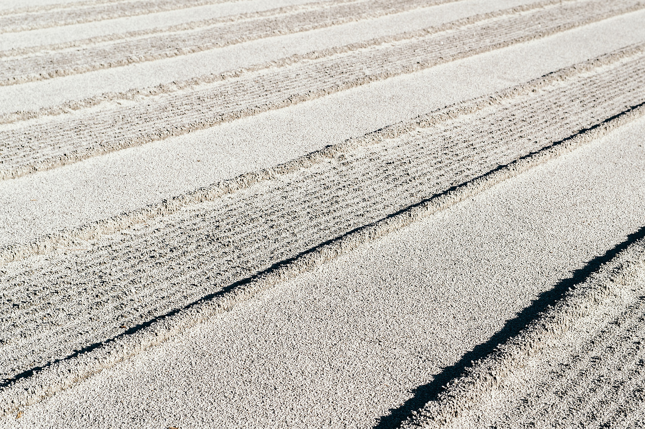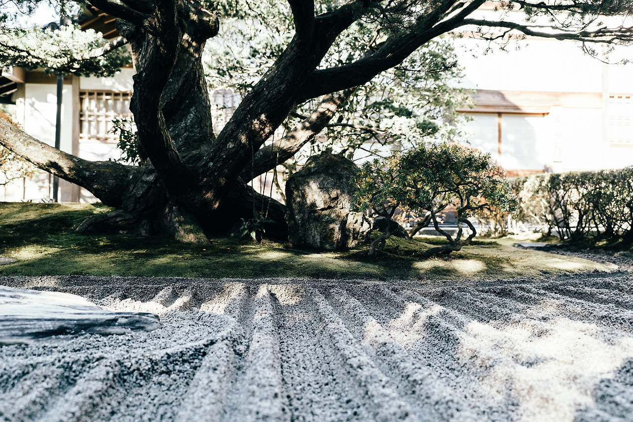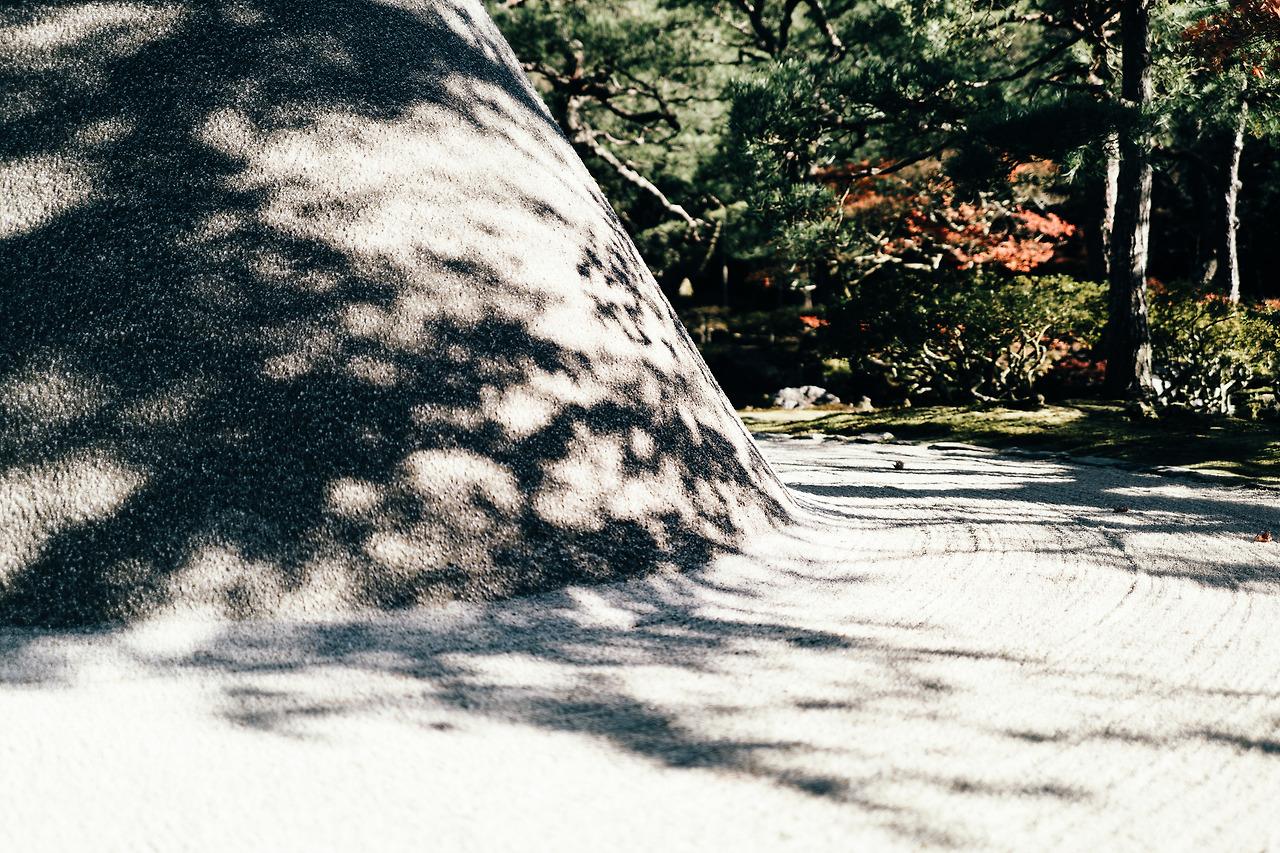 은각사 정원도 입구 근처에 모래로 된 평원이 있었다. 이 곳은 다른 곳과는 달리 모래를 다듬어 놓는 형식이 조금 달랐다. 다른 곳은 모래가 마치 물과 강 또는 나이테 느낌이었는데, 여기는 기하학적이고 뭔가 미래적인 느낌도 들었다.