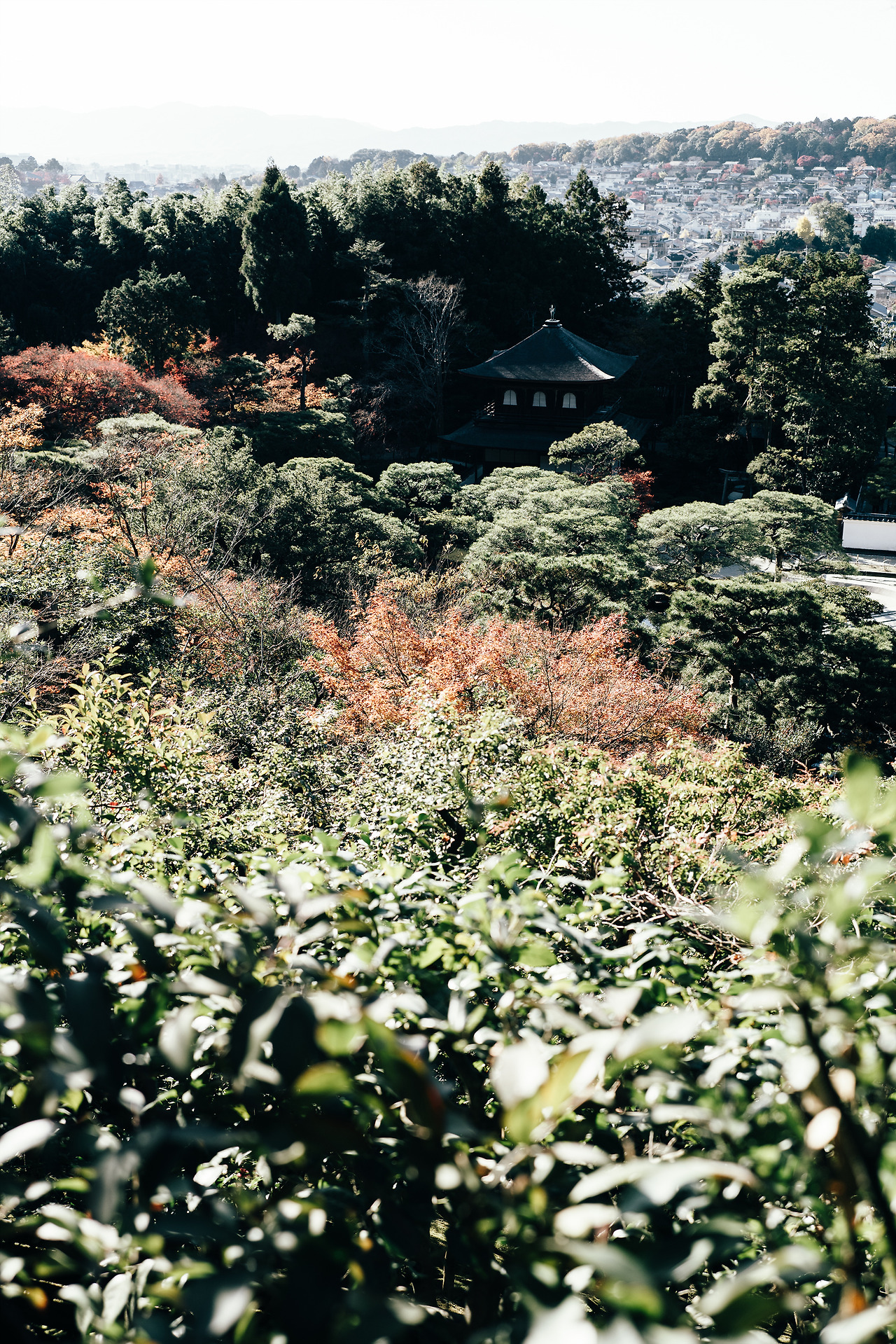 가장 높은 곳에 올라오면, 은각사 내부뿐만 아니라 교토 시내까지 보인다.