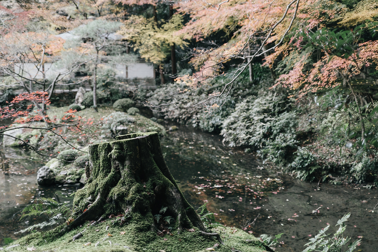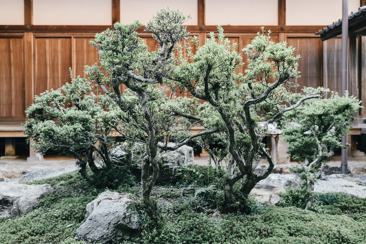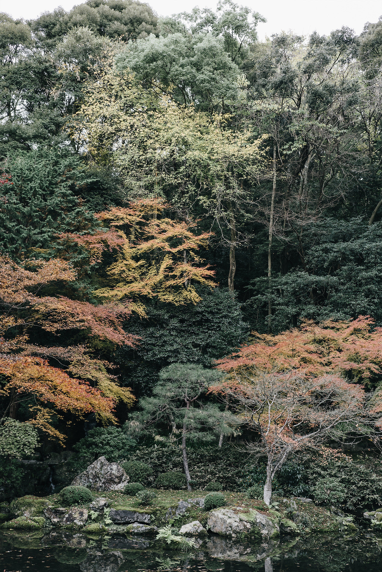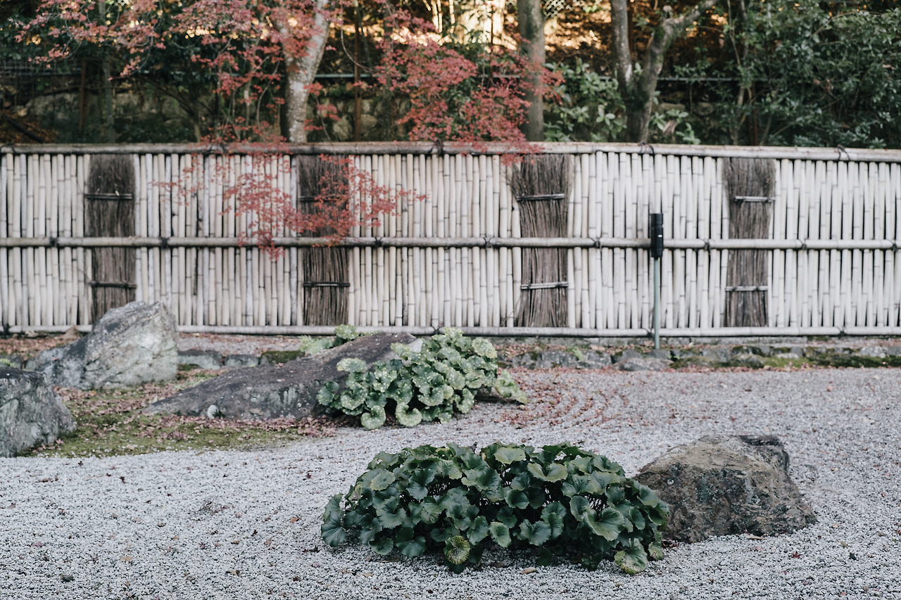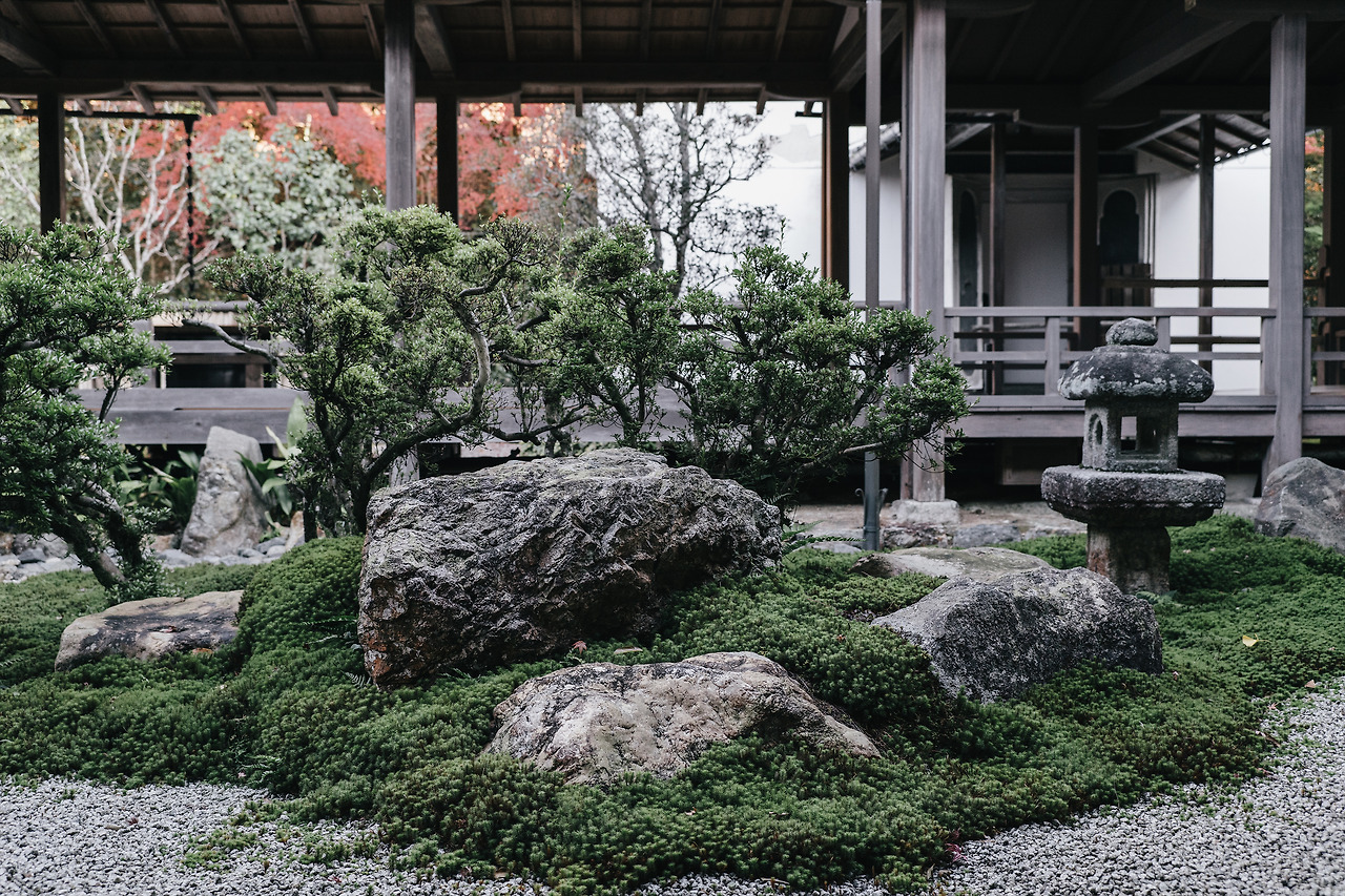 방장정원 입구에는 모래로 된 연못과, 이끼와 나무와 바위로 된 섬이 자리 잡고 있었다. 치온인의 방장정원보다 더 인공적이고 그림 같은 느낌이 강했다. 마치 미술관에서 전시구역 중간에 있는 대형 작품을 보는 느낌이었다.