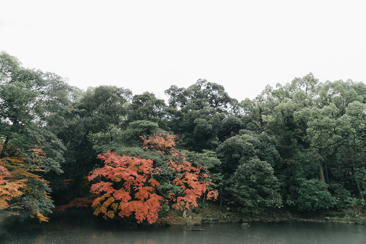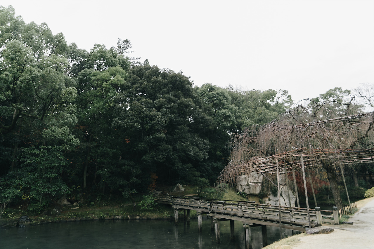 호수 바깥쪽 길에서 조금만 안으로 들어가면 나무가 우거진 곳들이 많이 있었다. 여태껏 교토나 오사카에서 봐왔던 정원처럼 작은 숲처럼 빽빽하진 않고, 정원과 정원 밖을 나눠놨다 정도의 느낌이었다.
