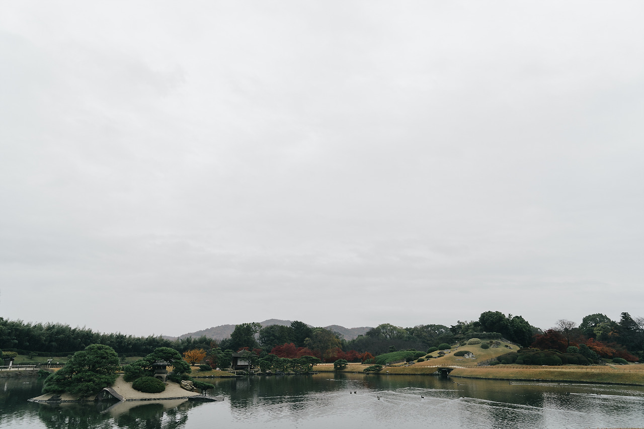 정원 입구에 들어서자마자 큰 호수가 보였다. 여태껏 교토와 오사카에서 보아왔던 작은 정원들에 딸린 연못과는 비교할 수 없는 크기였다.