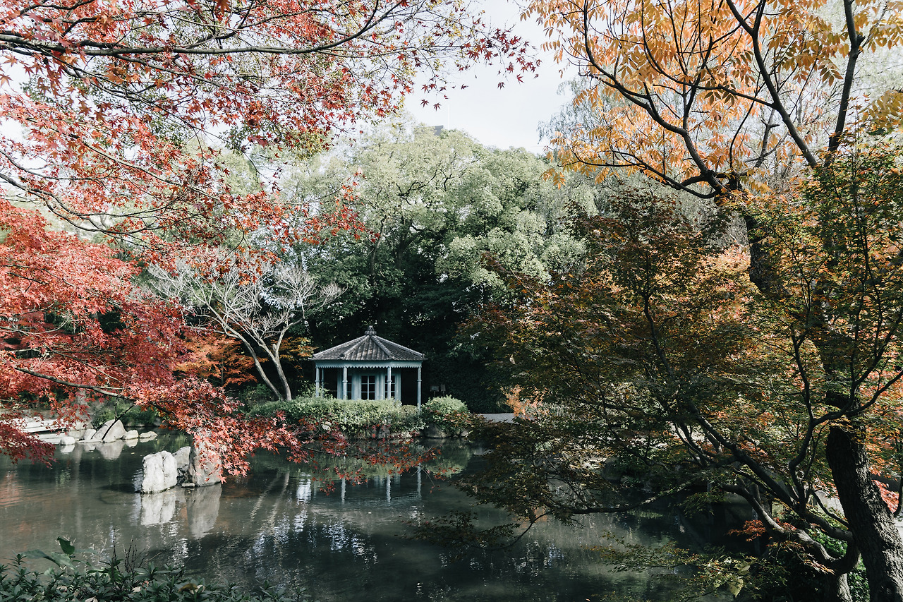 정원 안쪽에는 입구 쪽 호수보다 더 크고 깊어 보이는 호수가 있었다. 덕수궁 석조전을 보는 느낌의 정자나 현대식 건물 사이에, 큰 나무들이 주변에 우거져 있었다. 교토의 다른 정원들과 마찬가지로, 여기도 정원 주변은 나무와 건물이 둘러싸고 있더라.