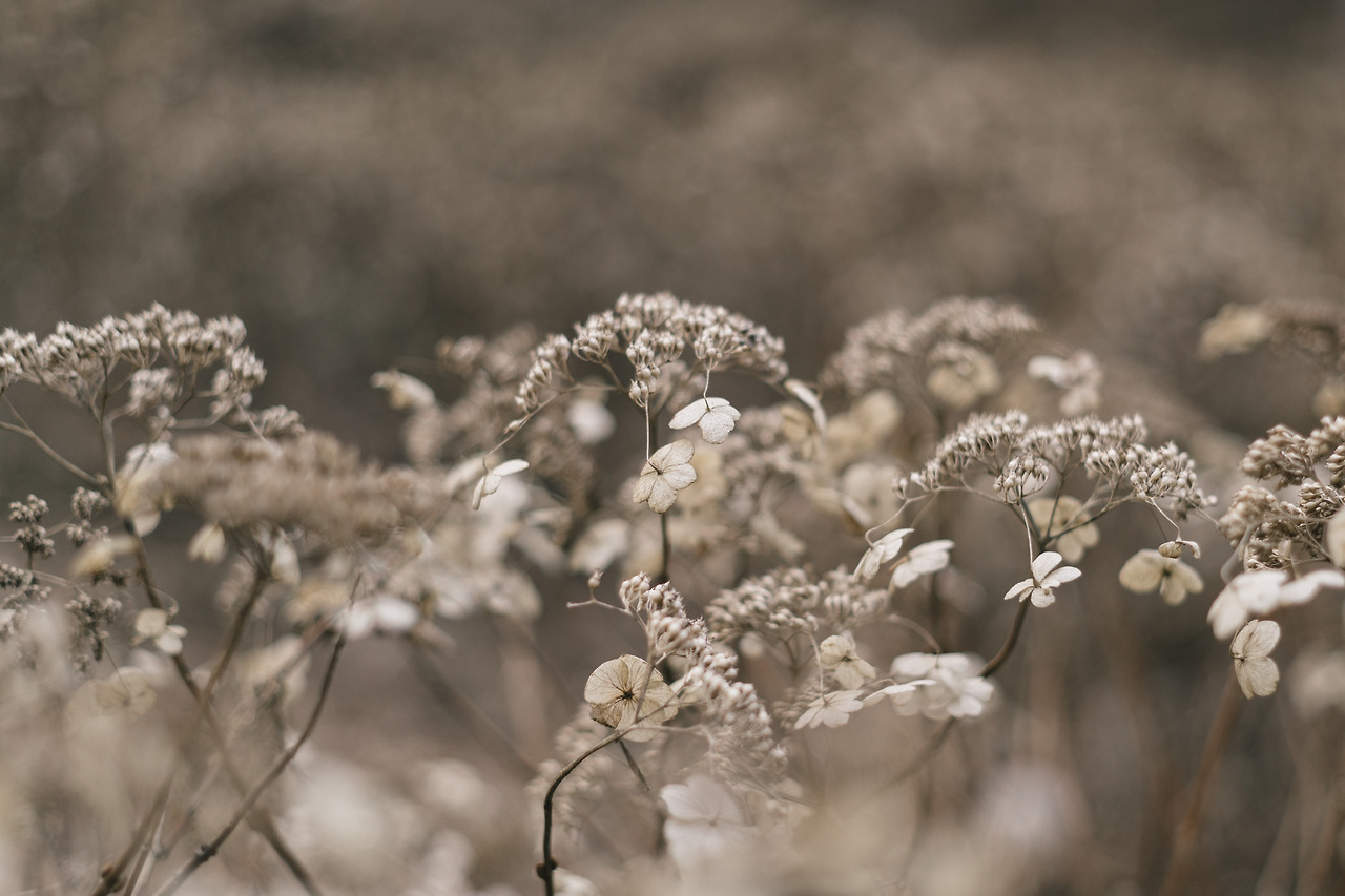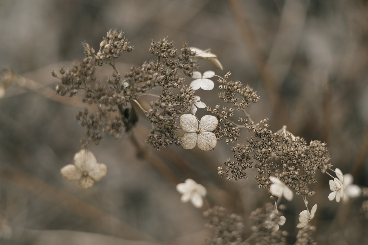 빛나던 날의 아름다움이 모두 탈색되어, 화석처럼 남아 있는 수국들이 보였다. 채도만 빠졌을 뿐 형태는 만개할 때와 차이가 없었다.