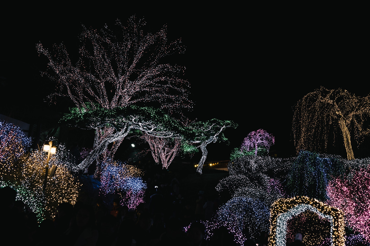 청계천에서나 볼 수 있는 각종 조형물이나 터널형 구조물부터, 나무에 여러 색의 전등이 입혀져 있었다. 꽤 괜찮은 광경이라 그런지, 여태껏 아침고요 수목원을 찾았던 때 중 이 날 가장 많은 사람을 봤다. 찍을 공간조차 안 나올 정도로 길에 사람이 많았다.