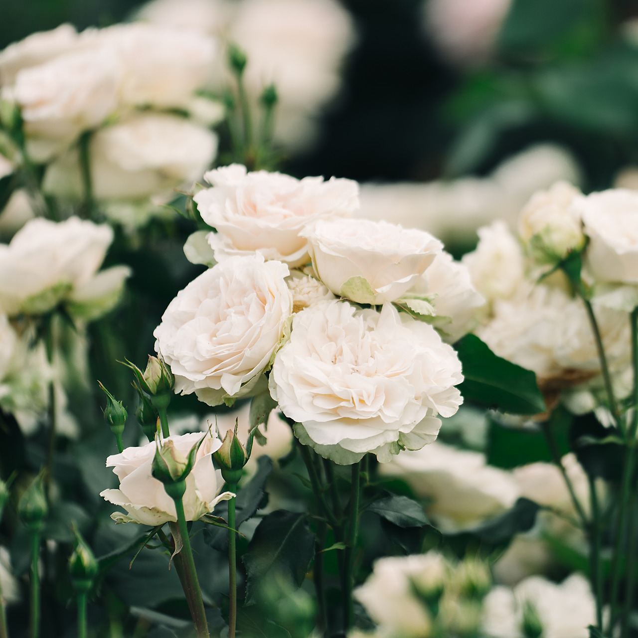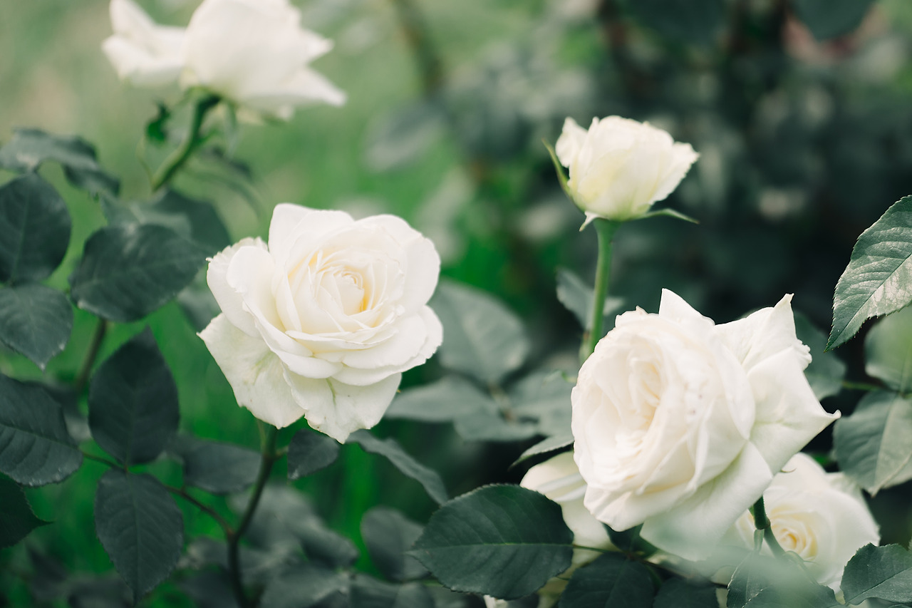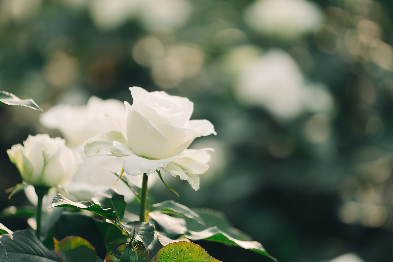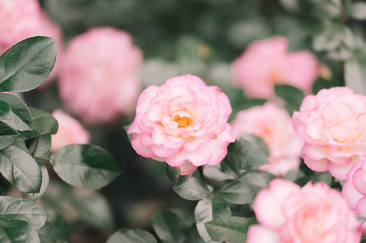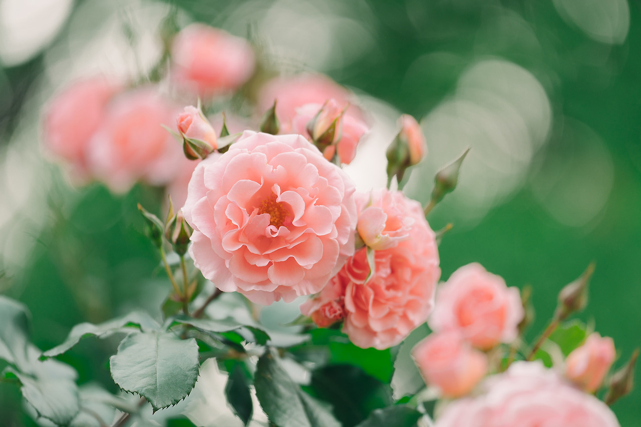 장미정원으로 가는 길에 무리 지어 피어 있는 것들과 혼자 떨어져 있는 것들을 골고루 담았다. 크고 넓게 퍼지며 잎이 많은 꽃이니, 옆면 보다는 위쪽이나 위쪽 옆면을 보여주는 것에 집중했다.