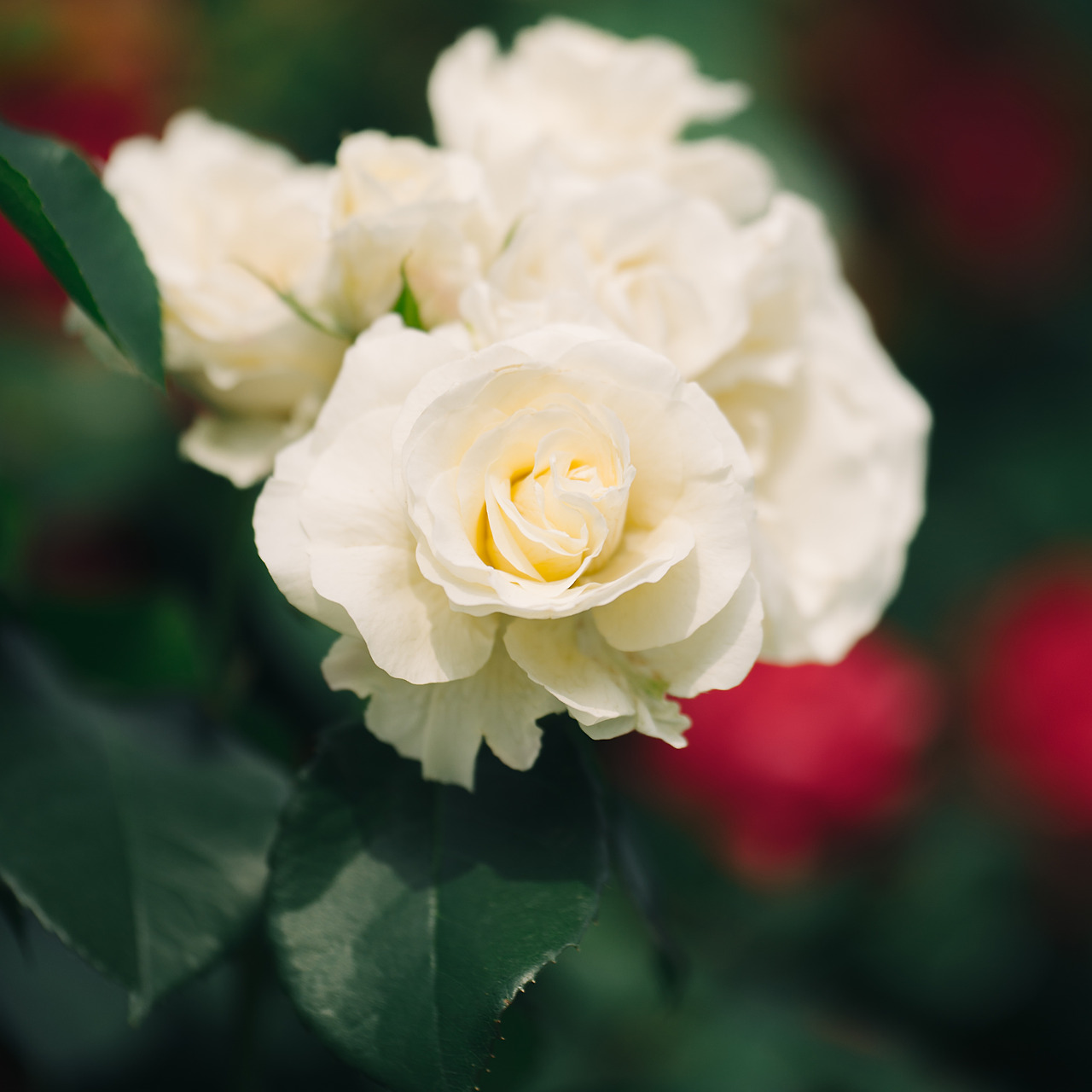 장미정원 입구에는 꽃기둥이 줄지어 있었다. 화각이 화각인 만큼, 기둥 전체를 담기 보다는, 기둥 중간이나 위쪽의 꽃들을 담았다. 각도를 잘 맞추면, 주변 나무들이 알아서 보케를 만들어준다.