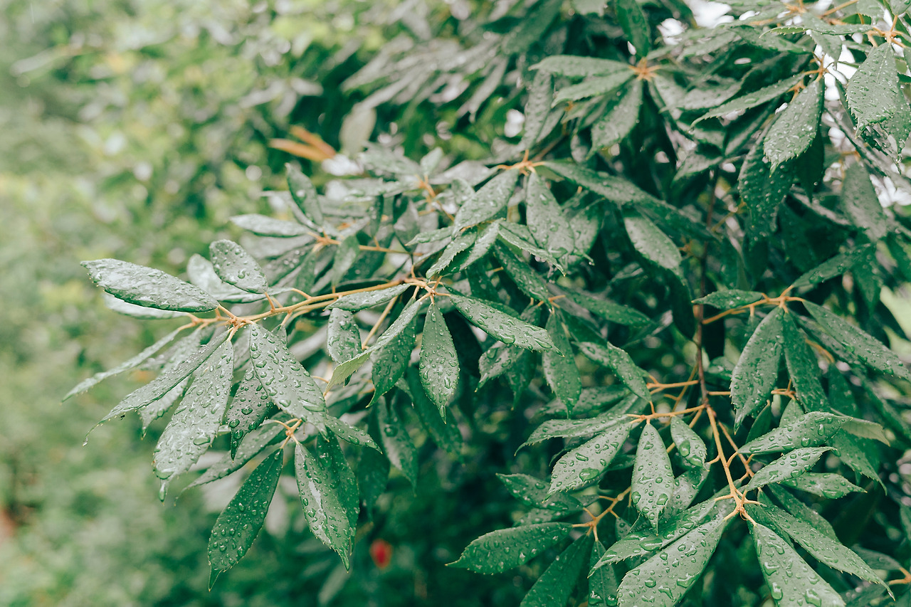 아침부터 내린 비 때문에 나무들은 모두 무거운 빛을 띠고 있었다.