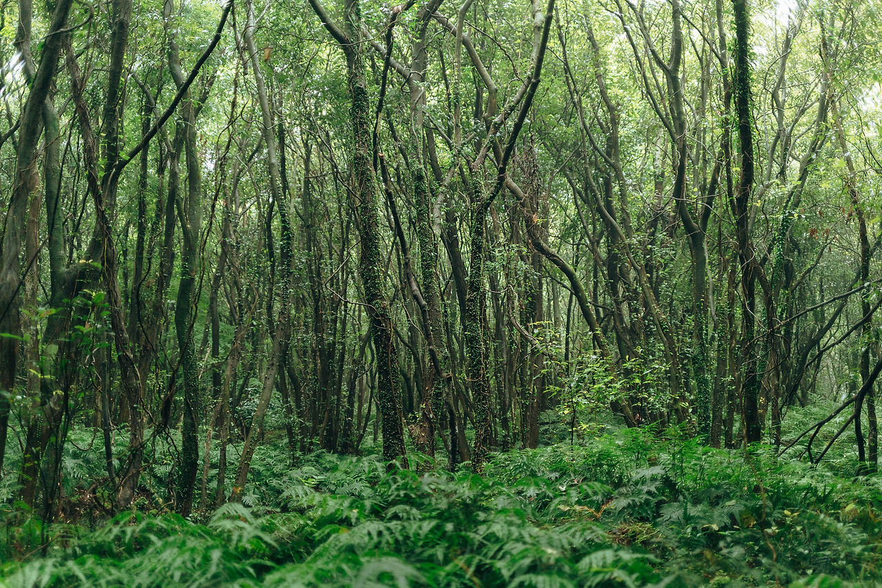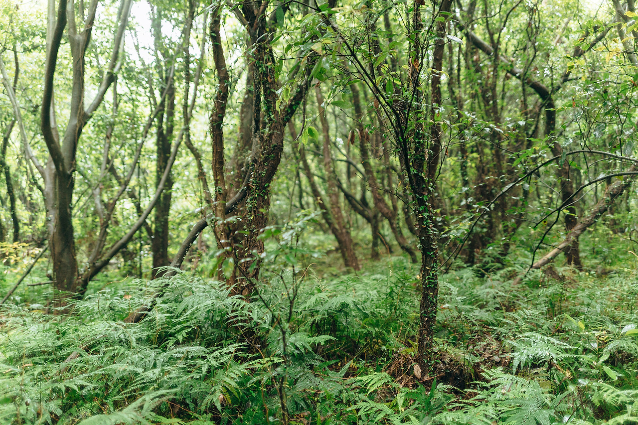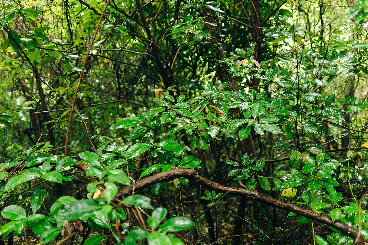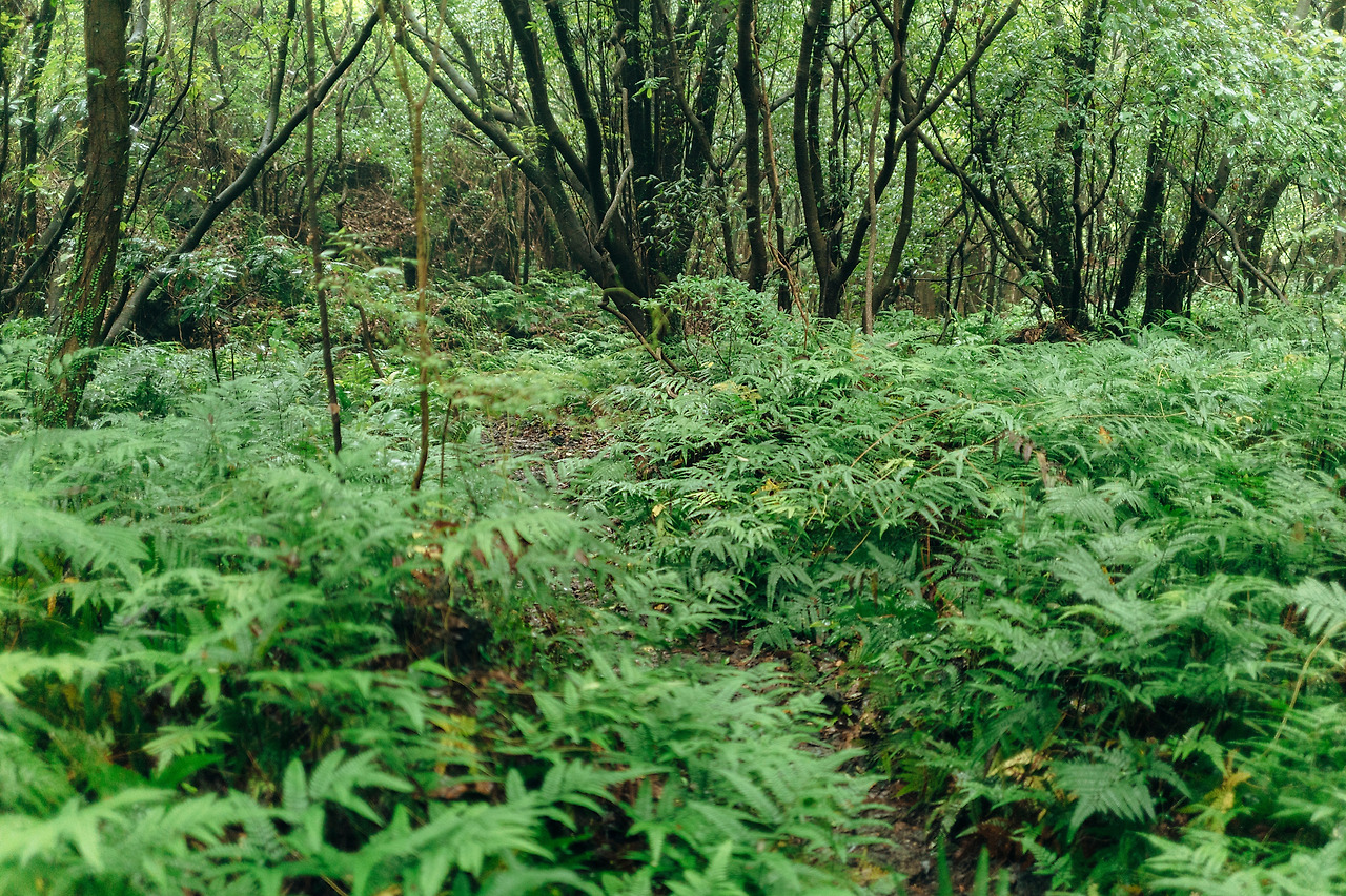 숲 처음부터 엄청난 고사리들과 내려오는 덩굴과 비를 머금은 잎들이 나를 반겼다.