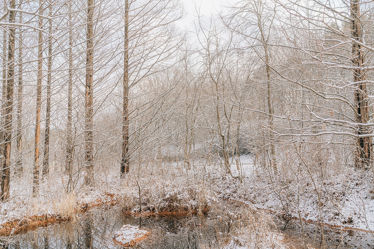 올해 첫눈도 그렇게 놓쳤다. 눈이 비처럼 내려 땅을 적시는 것을 무서워하며 길을 달렸다. 그리고 시간이 흐른 어느 날, 눈이 오길래 잠시 일을 미루고 밖을 나갔다. 비록 눈이 내린 정원이 내가 생각하는 겨울색은 아니지만, 이번에는 나도 눈이 내리고 쌓이는 풍경을 찍었으면 좋겠다고 생각했다.