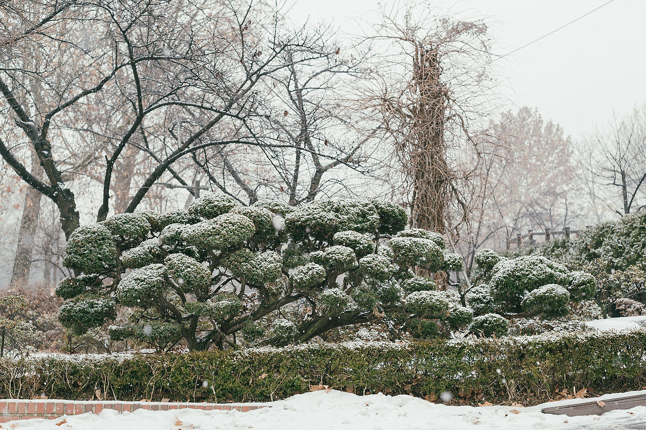 마침 이날은 눈이 참 많이 왔다. 참 싫어하는 질척거리는 반쯤 녹은 눈이 생기기 딱 좋은 날씨였다. 눈이 오는 날 카메라를 잡는 운이 없었던지라, 이날은 원래 온실만 찍고 가려던 계획을 바꿔서 바깥도 찍어보기로 했다.