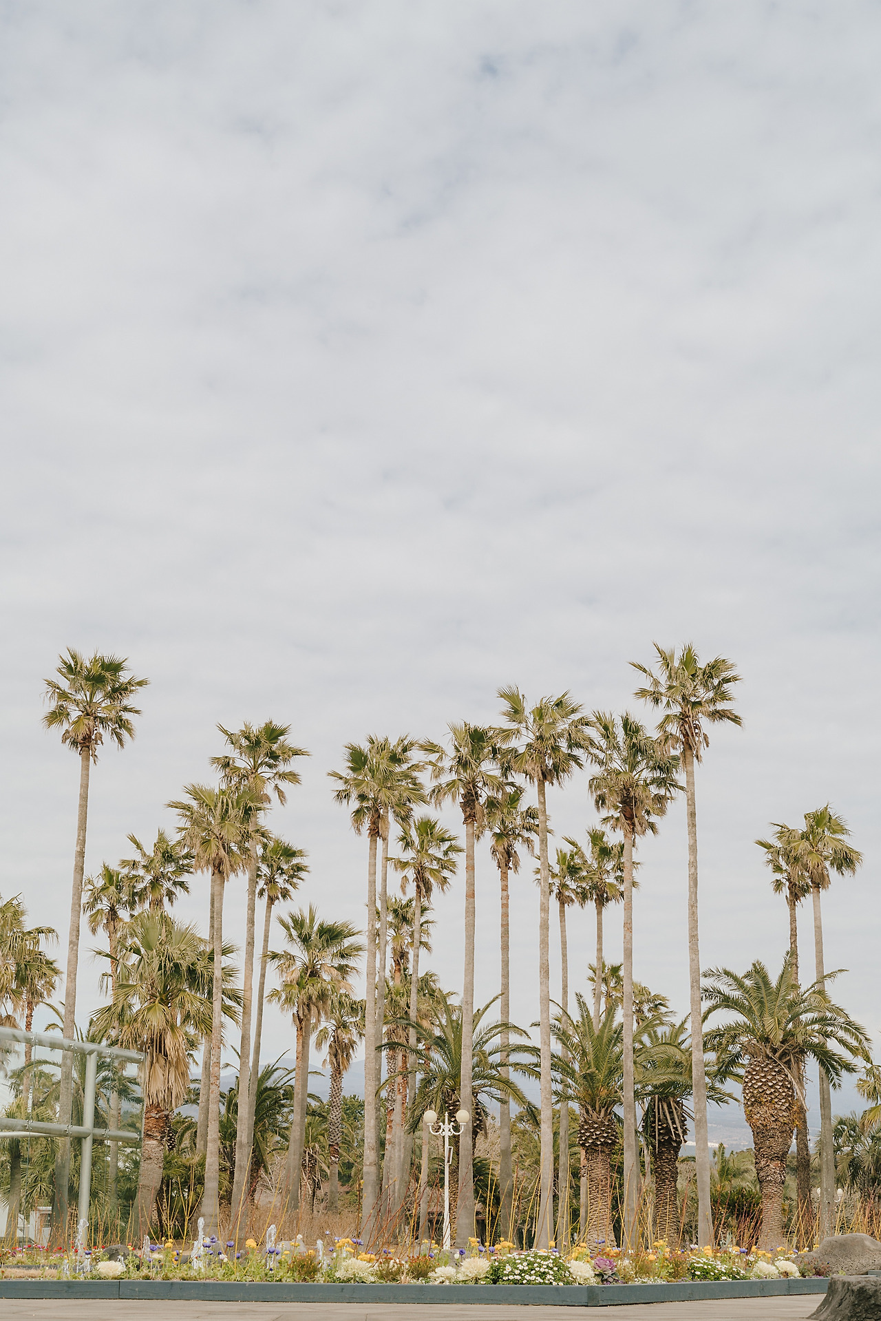 고요하고 가벼운 공기 속에, 열대식물이 잠시 쉬는 동안 난대식물들이 화려하게 피어있었다.
