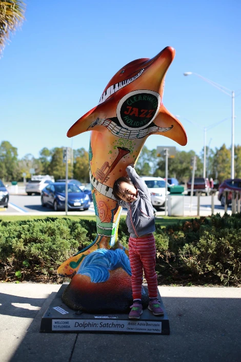 크루즈가 출발하기 전날 조지아 주 서바나에서 하루 묵고 다음날 일찌감치 플로리다로 향했다. 플로리다에는 첫 방문이다. 입구의 휴게소에 잠시 들렀다. 가을 끝자락에도 산뜻하고 훈훈한 공기가 이마를 스친다. 휴게소 앞에는 오렌지색 돌고래상이 예쁘게 서있다.